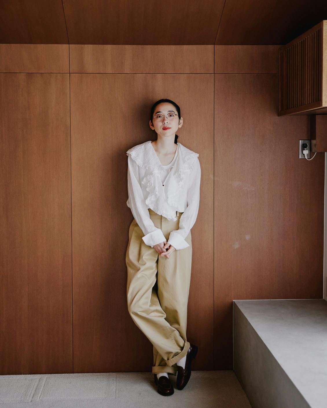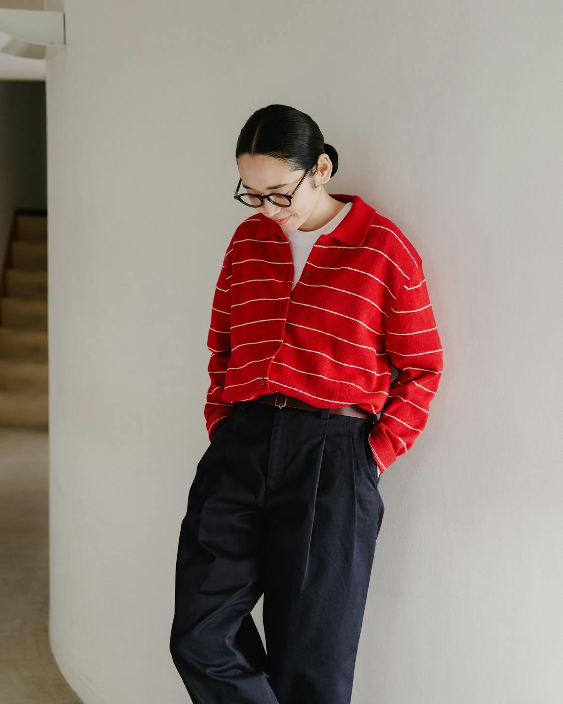 憧れの方に、このチノパンツを楽しむ、とっておきの春コーディネートを見せていただきました。
