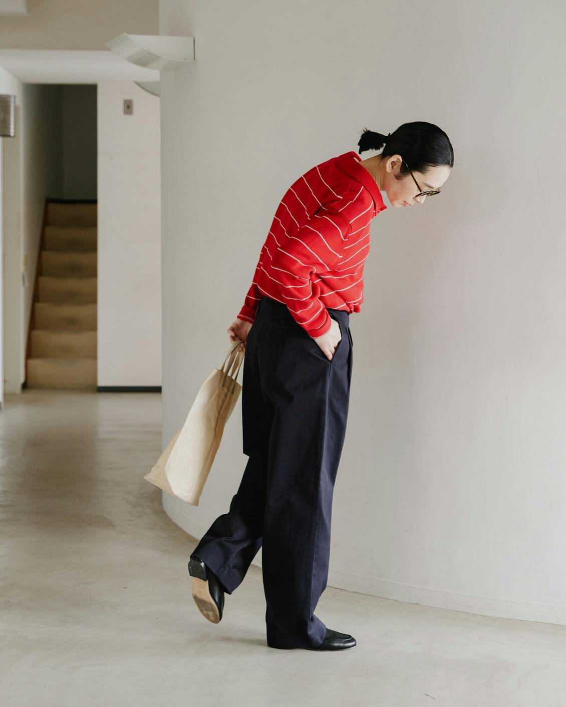 その日の足元や、お好みに合わせて調整いただけるところも、魅力のひとつ。カジュアルな装いも、品よくまとまるので安心です。