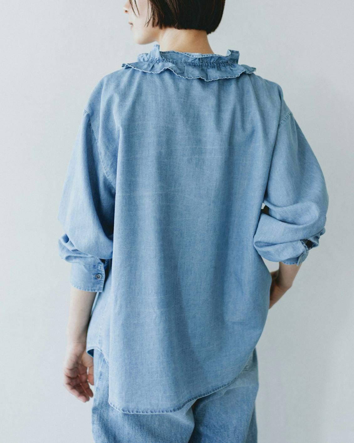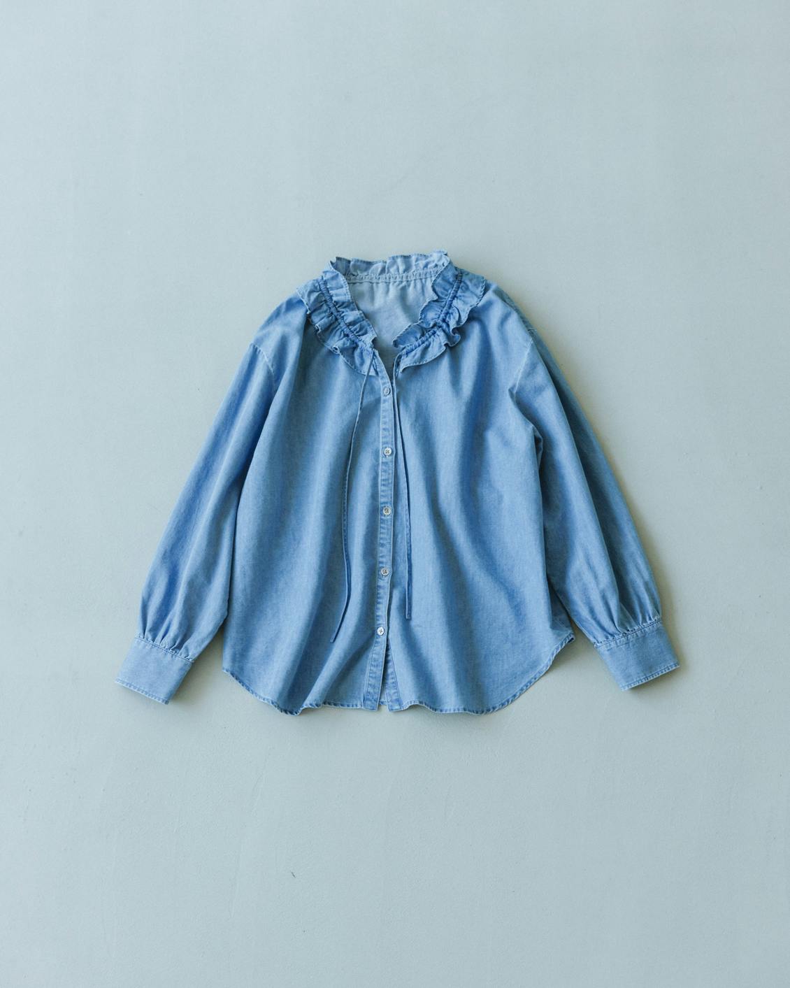 やわらかデニムのフリルブラウス