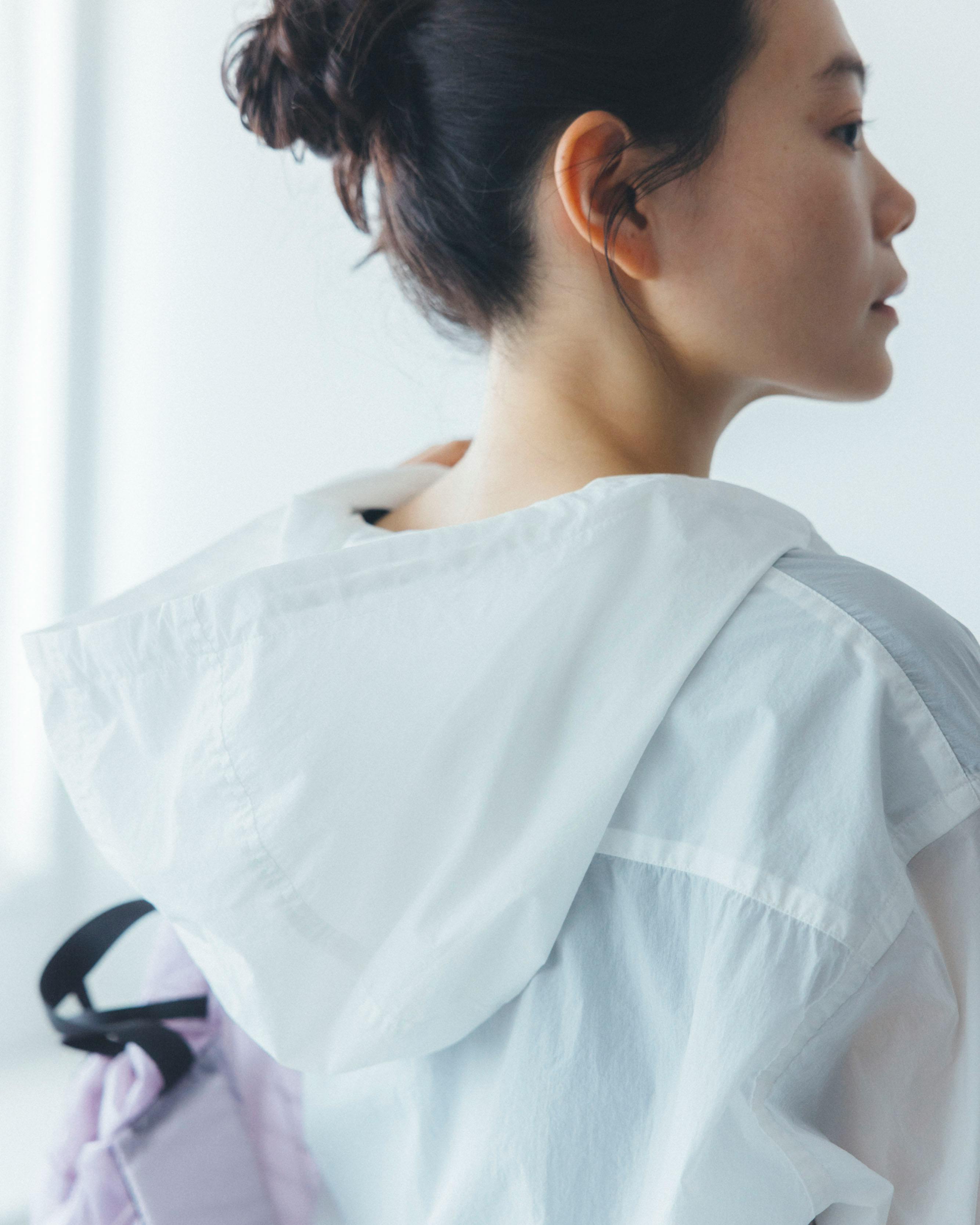 Gymphlex / フード付きナイロンシャツ(ホワイト)