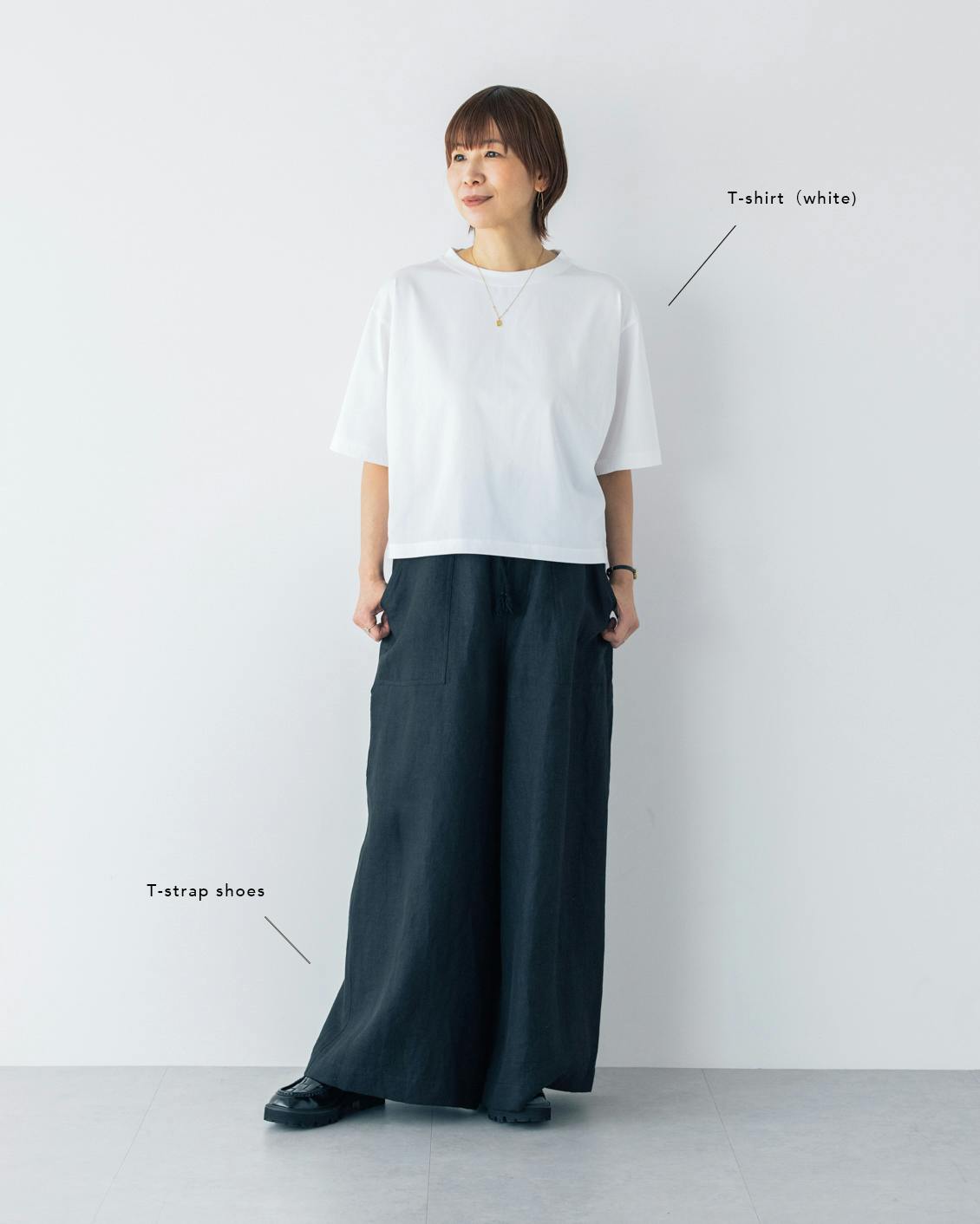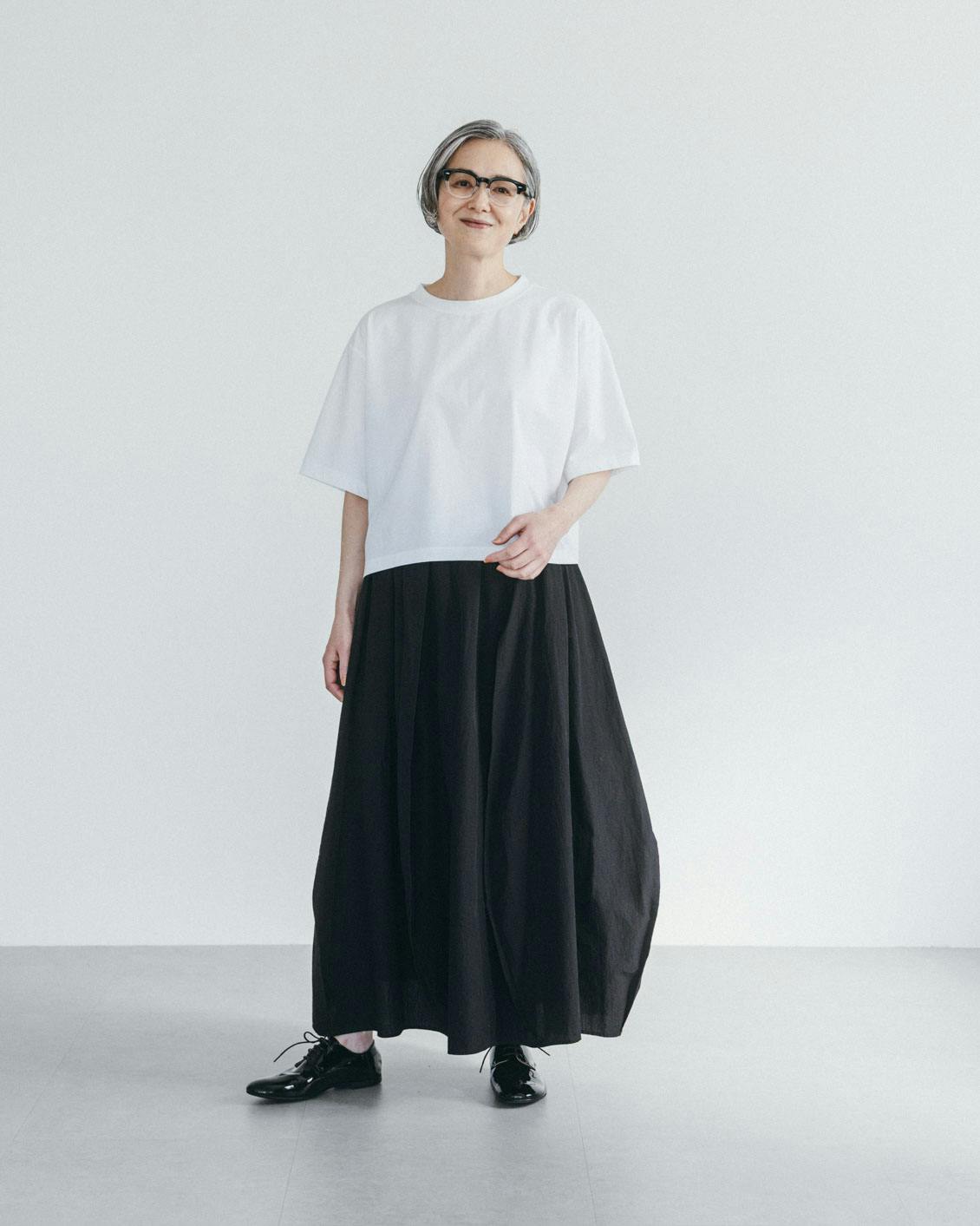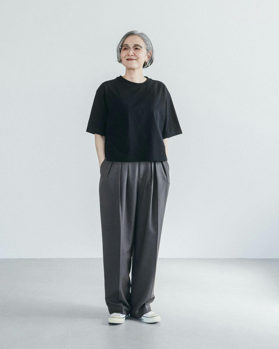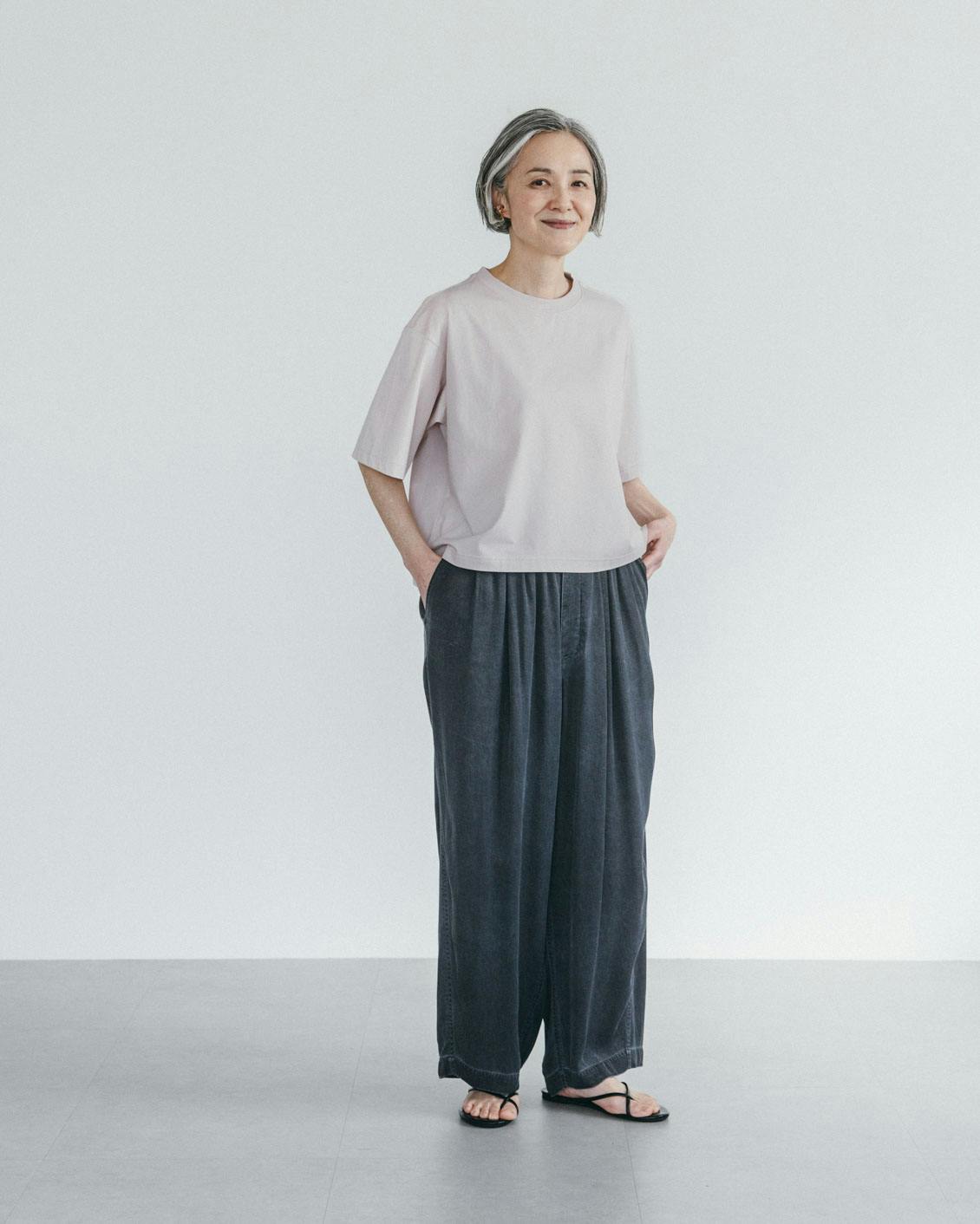 こちらのTシャツ開発へのアドバイスと商品ページのスタイリングをしていただいた、スタイリストの植村美智子(うえむら みちこ)さんに、大人のTシャツの着こなし方を伺いました。