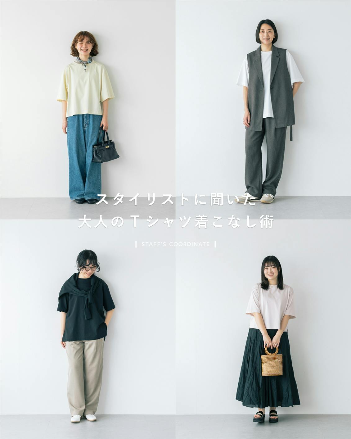 丈ごとのボトムス選びや着こなしのコツをもとに、4名が実際に着用した様子をお届け。