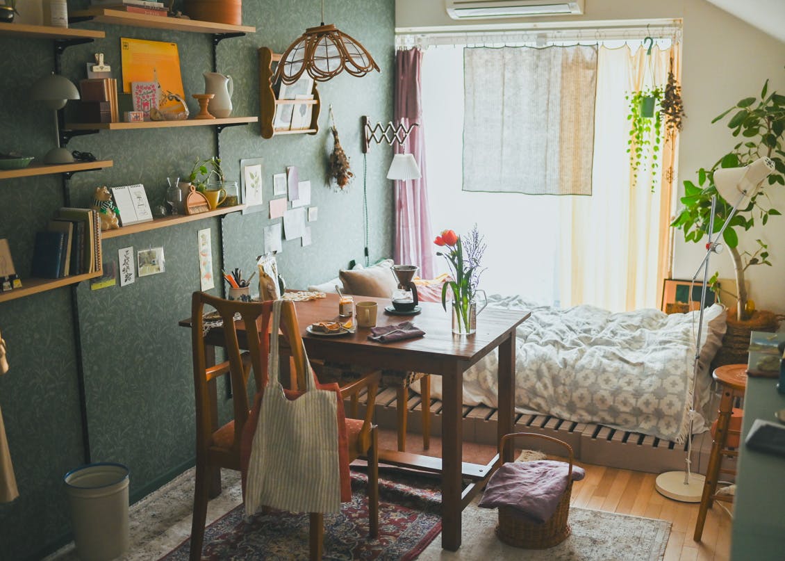 今回発売のファブリックアイテムを使って部屋の模様替えをしたり、キッチンで料理をしたり。