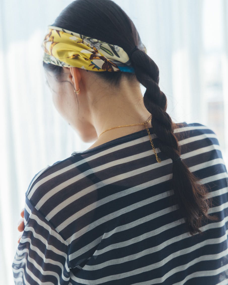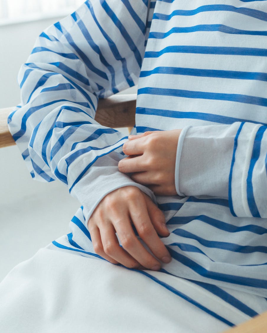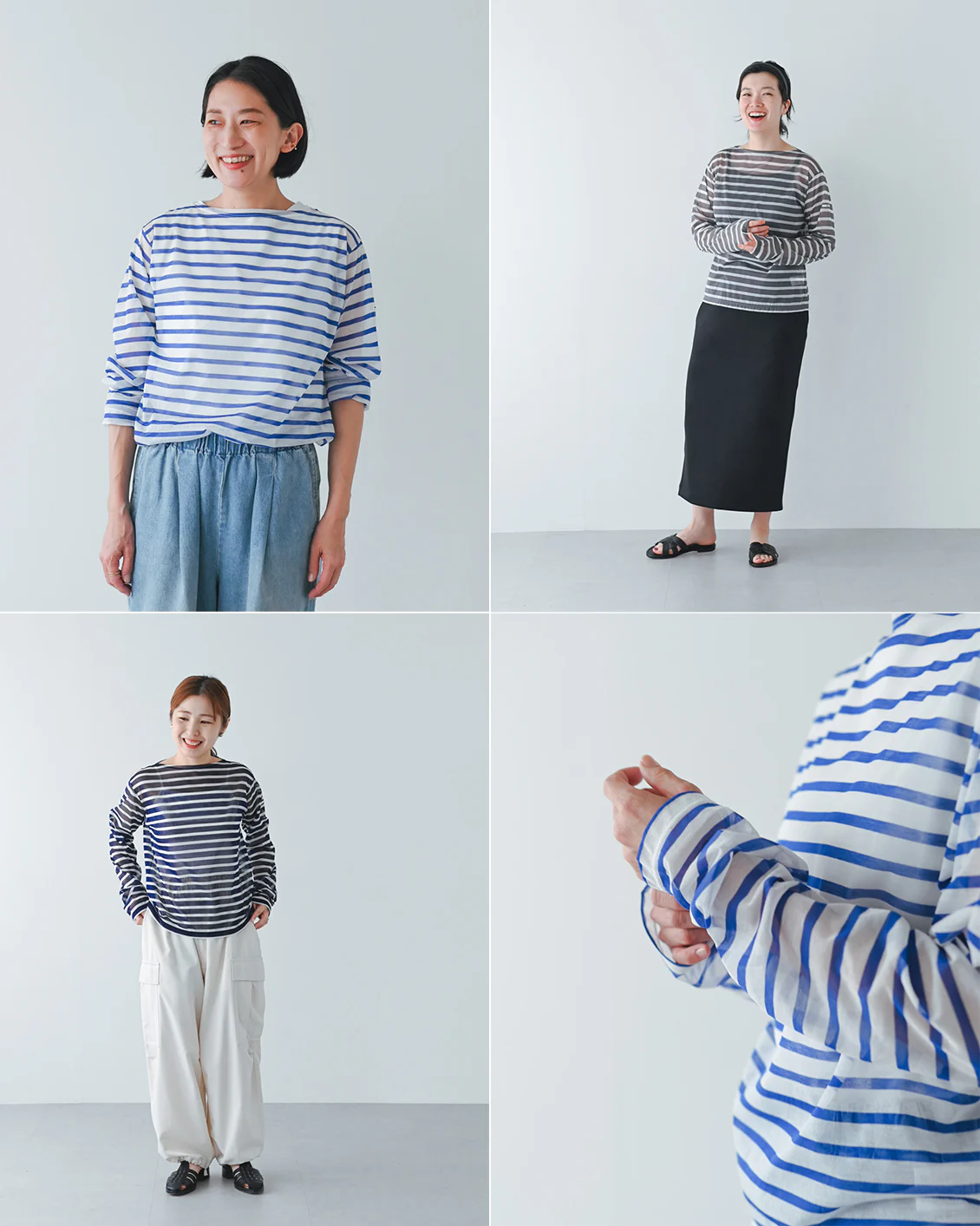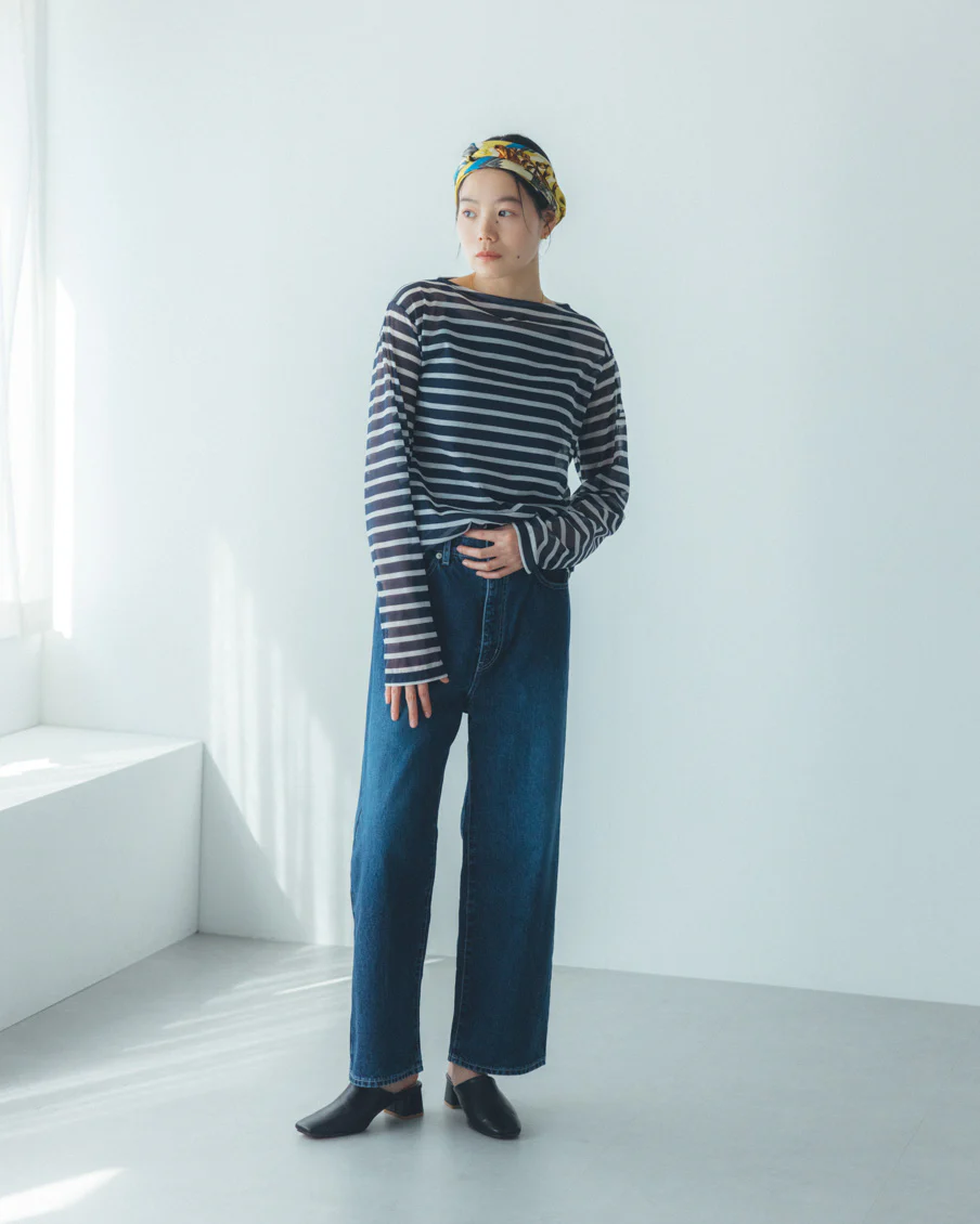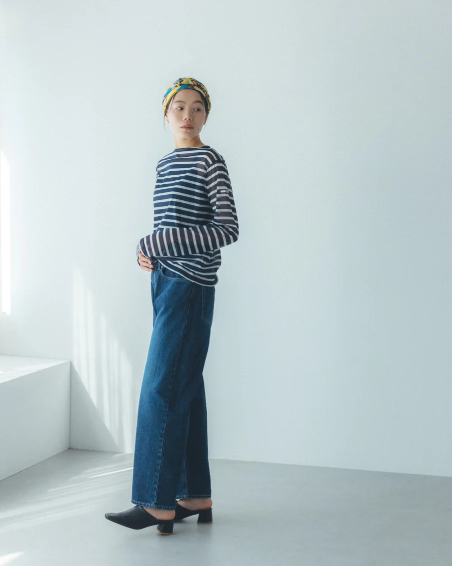 何に合わせても馴染み、着る人を選ばない、おおらかなボーダー。かぶるだけで抜け感が生まれ、大人っぽく、上品に映るシアー素材。
