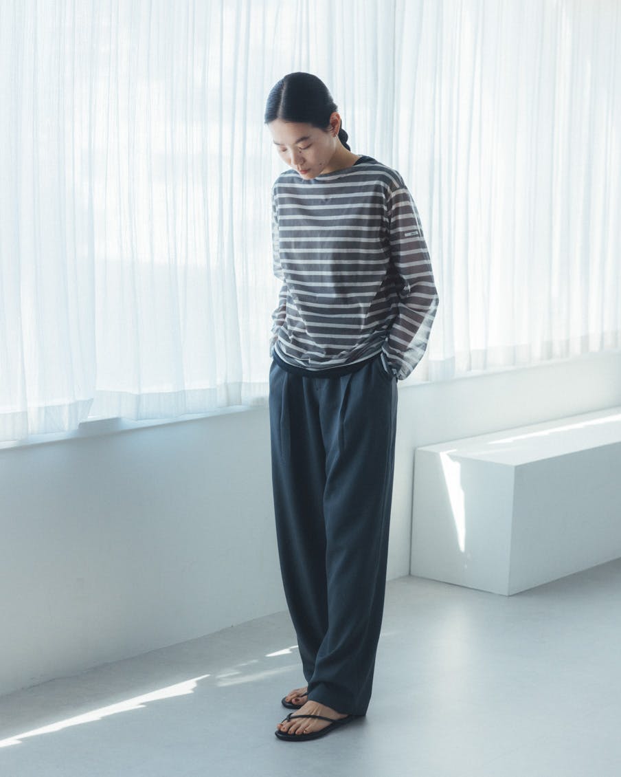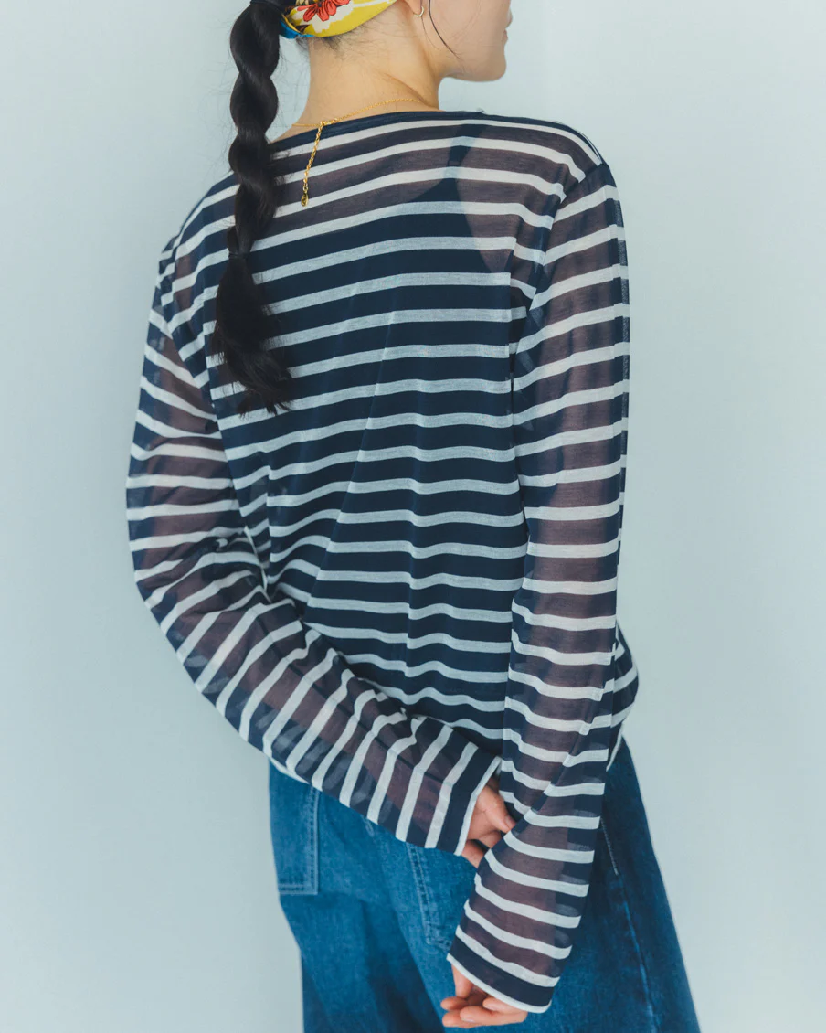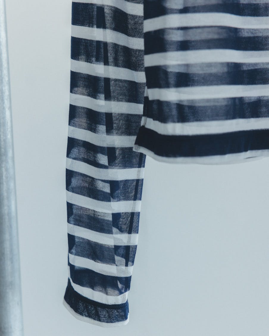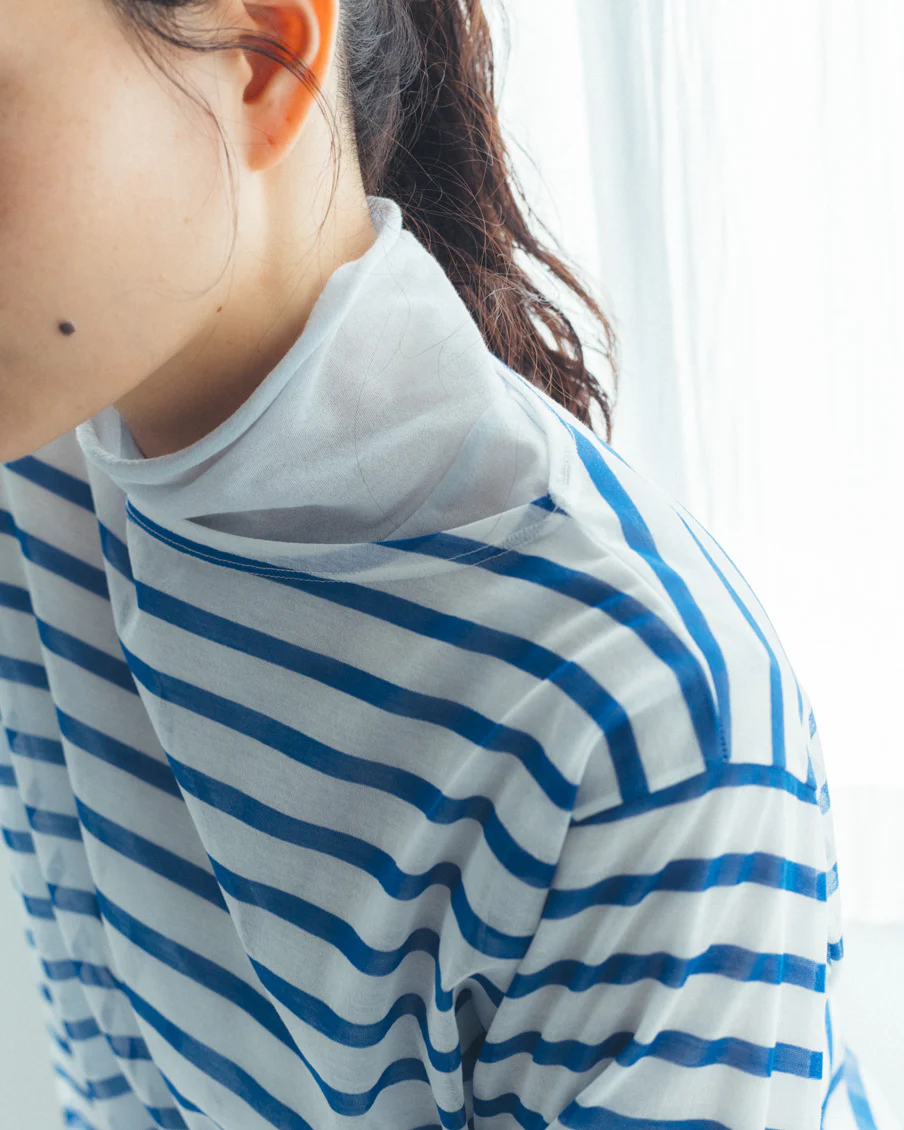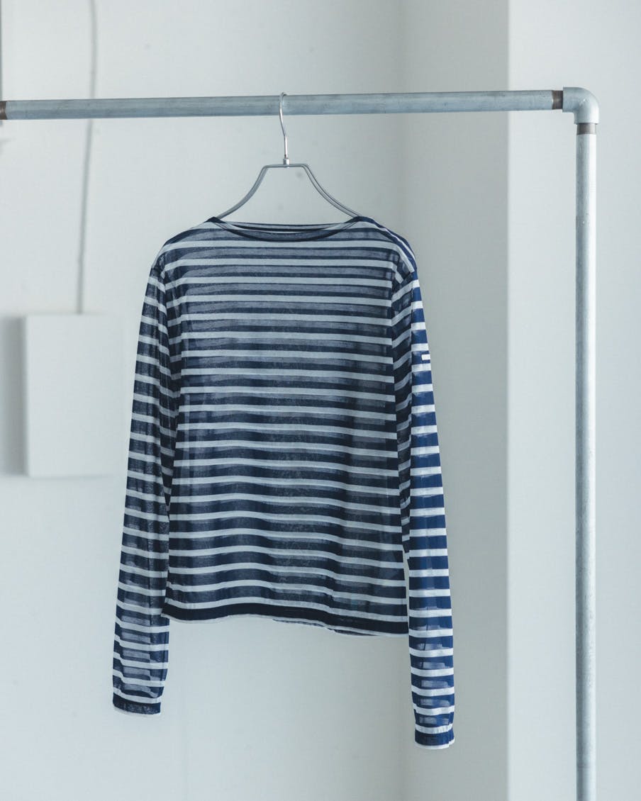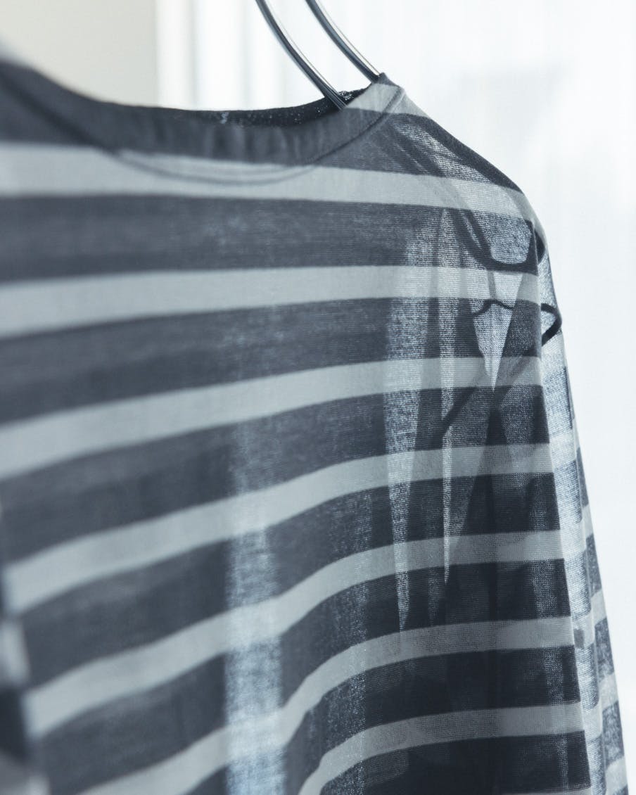 それでいて、シアー生地ならではの繊細さと、ドライな質感のおかげで、親近感のあるボーダーがひと味違う。