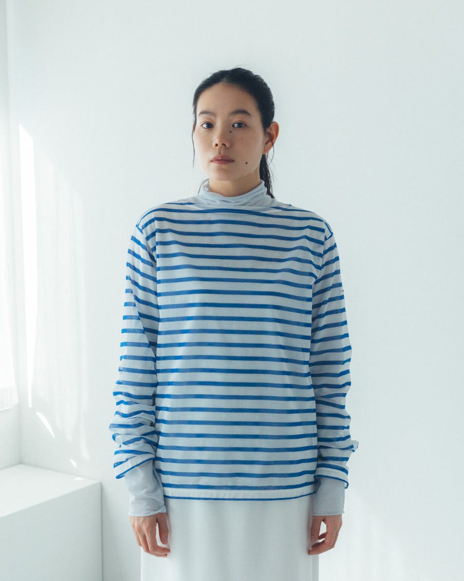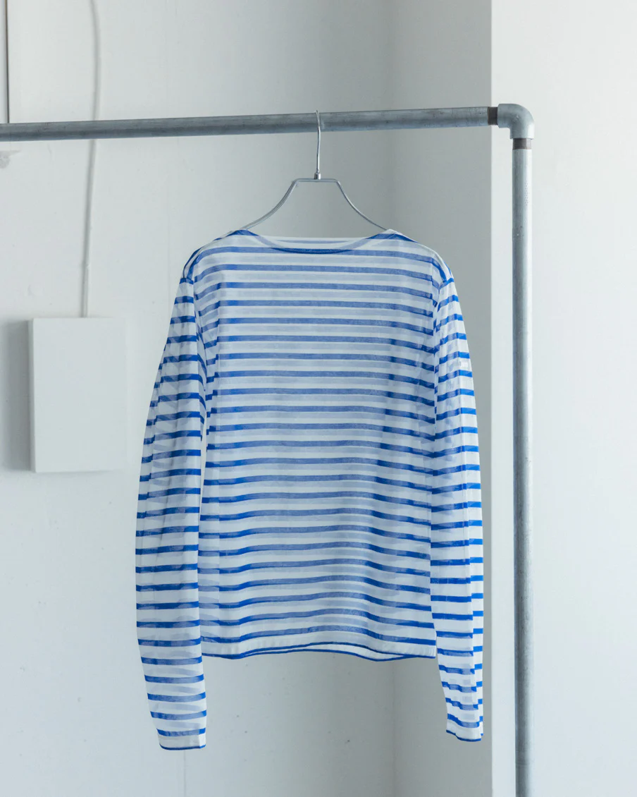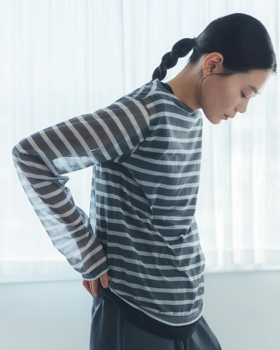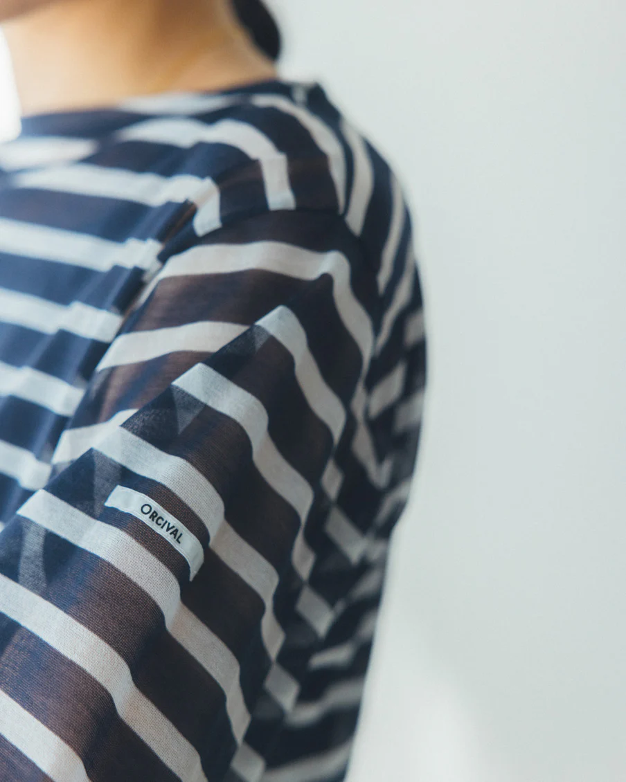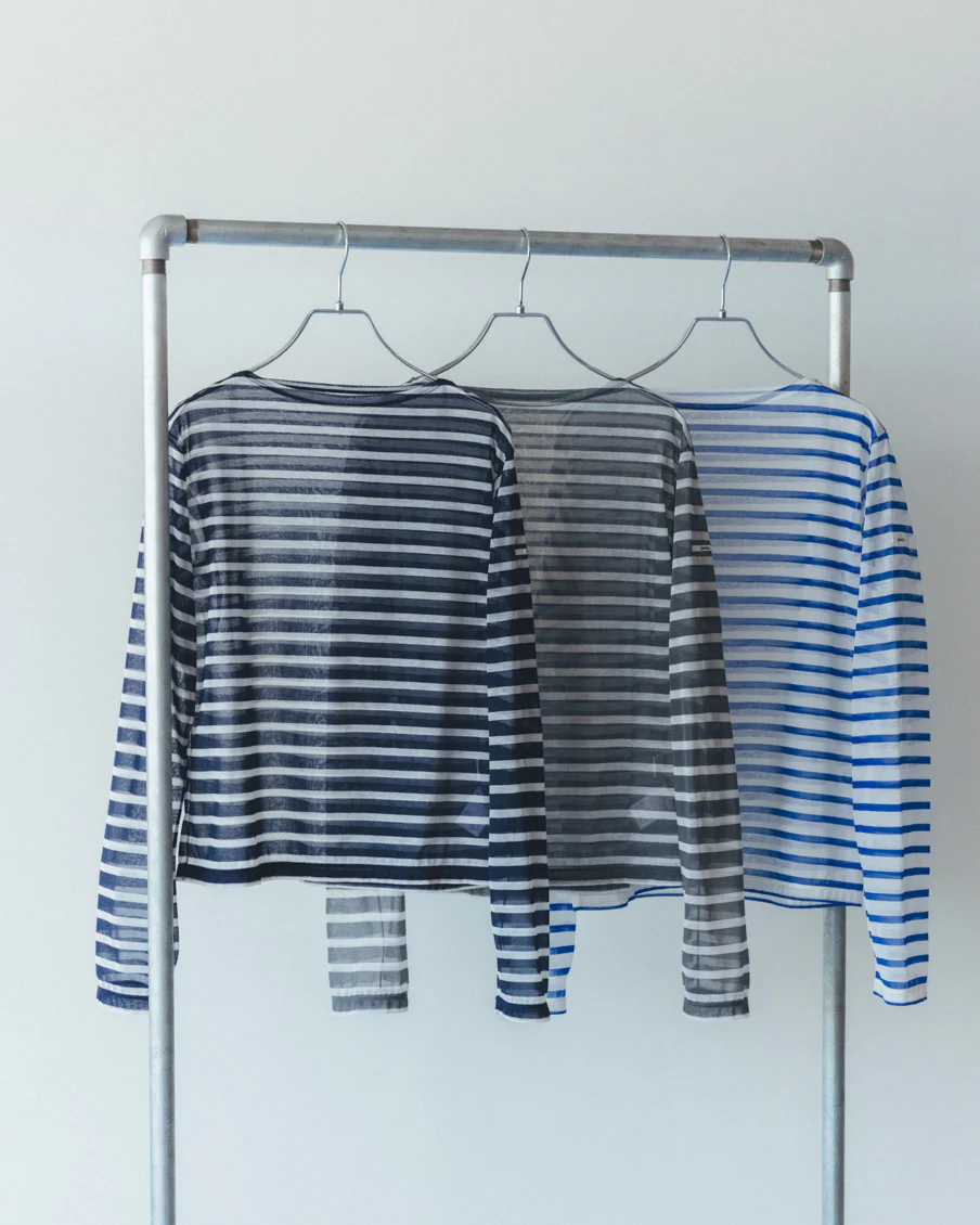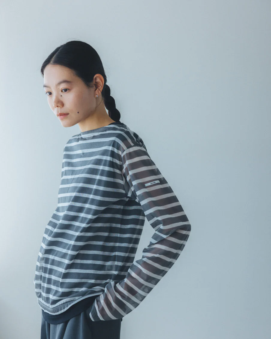 それでいて、シアー生地ならではの繊細さと、ドライな質感のおかげで、親近感のあるボーダーがひと味違う。