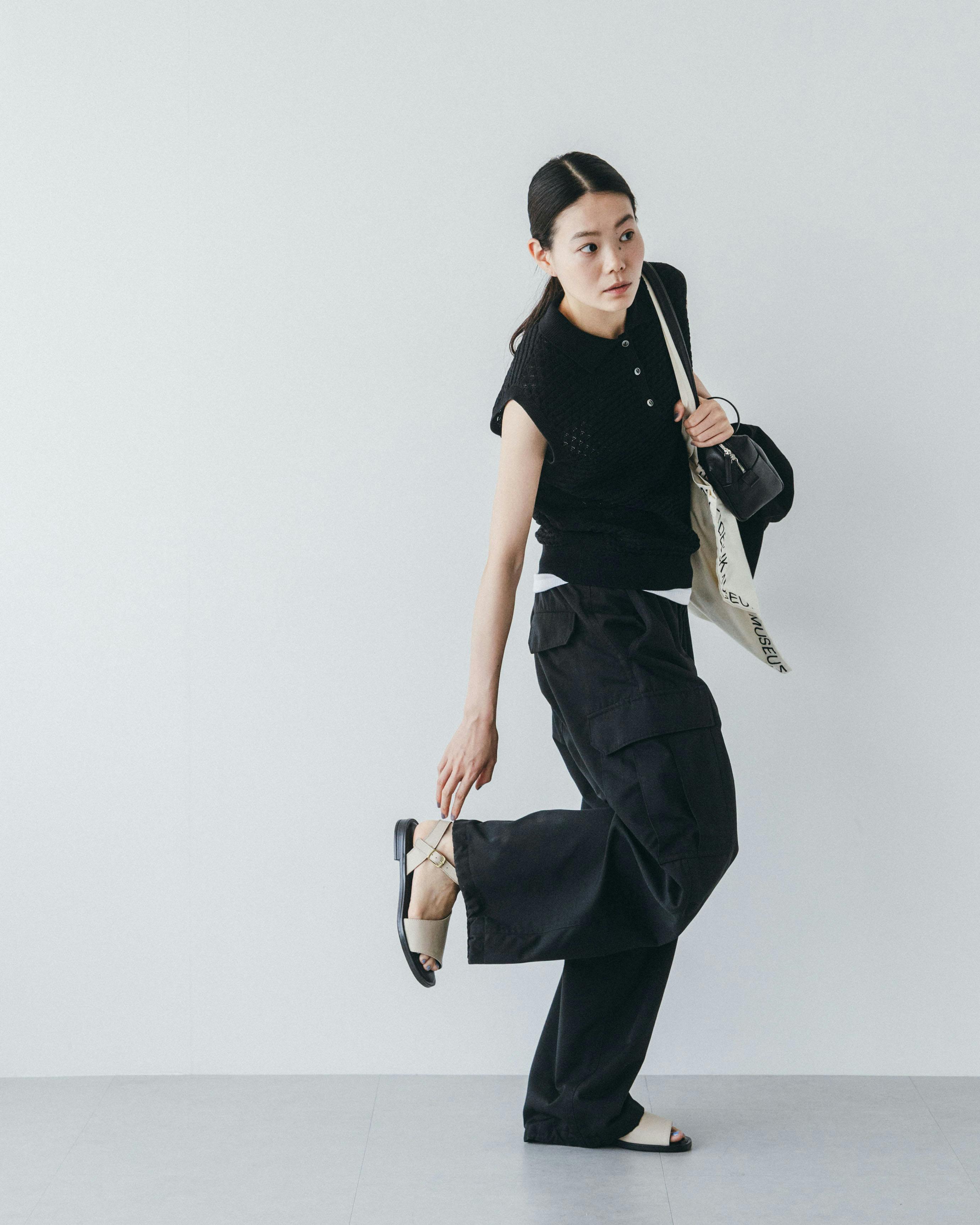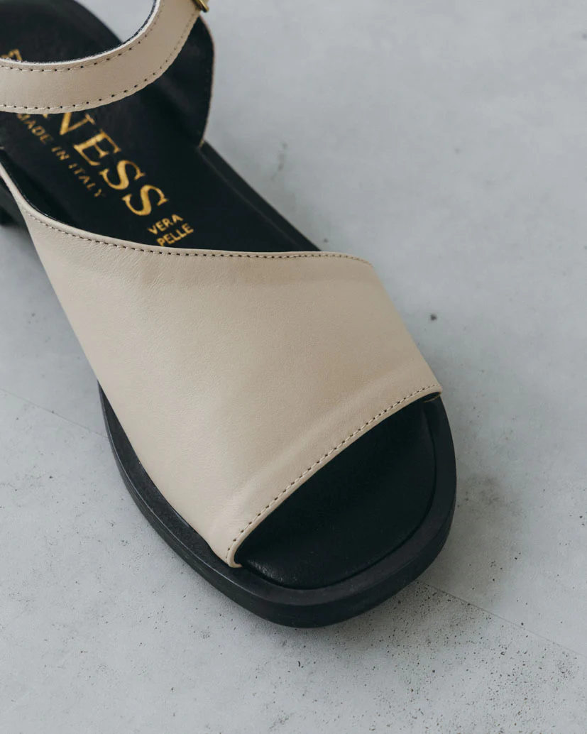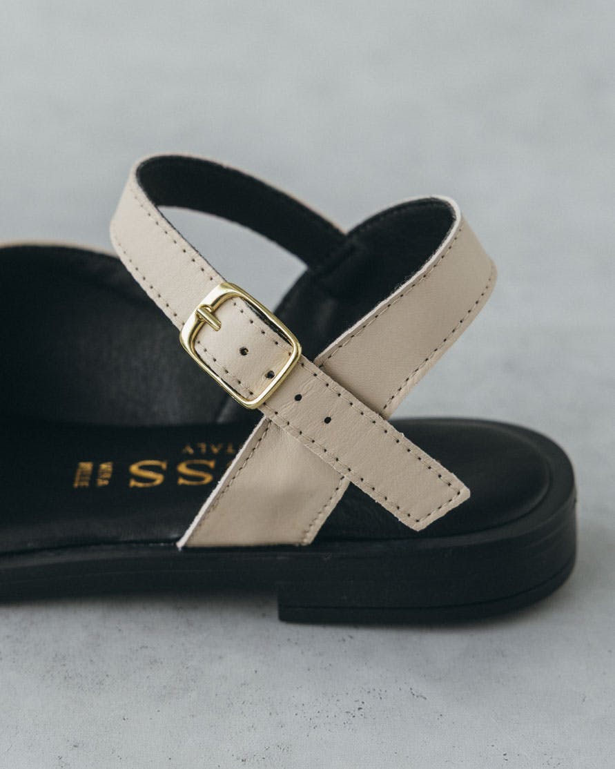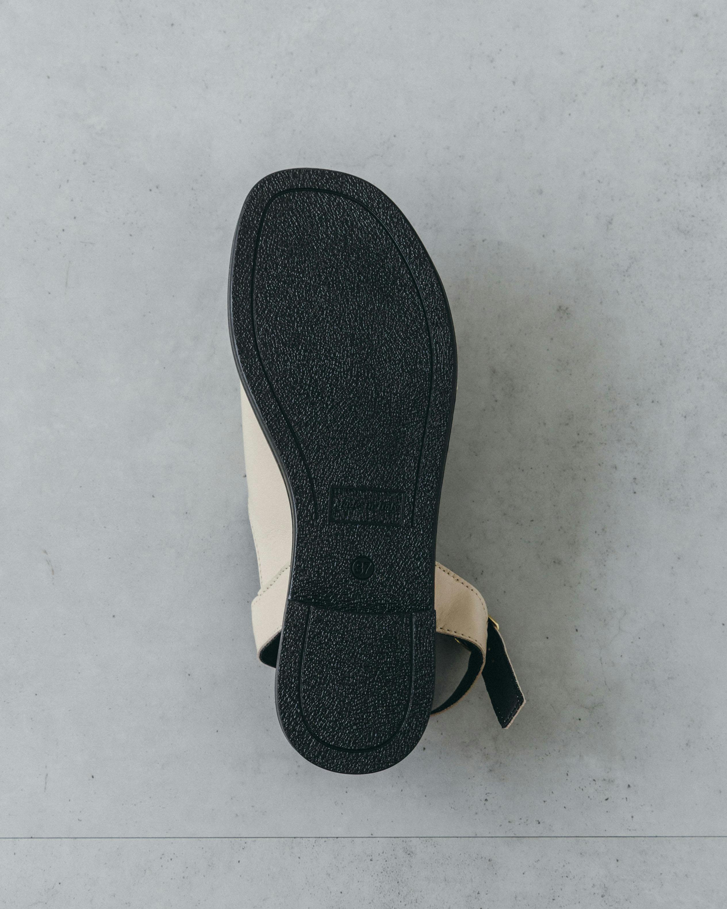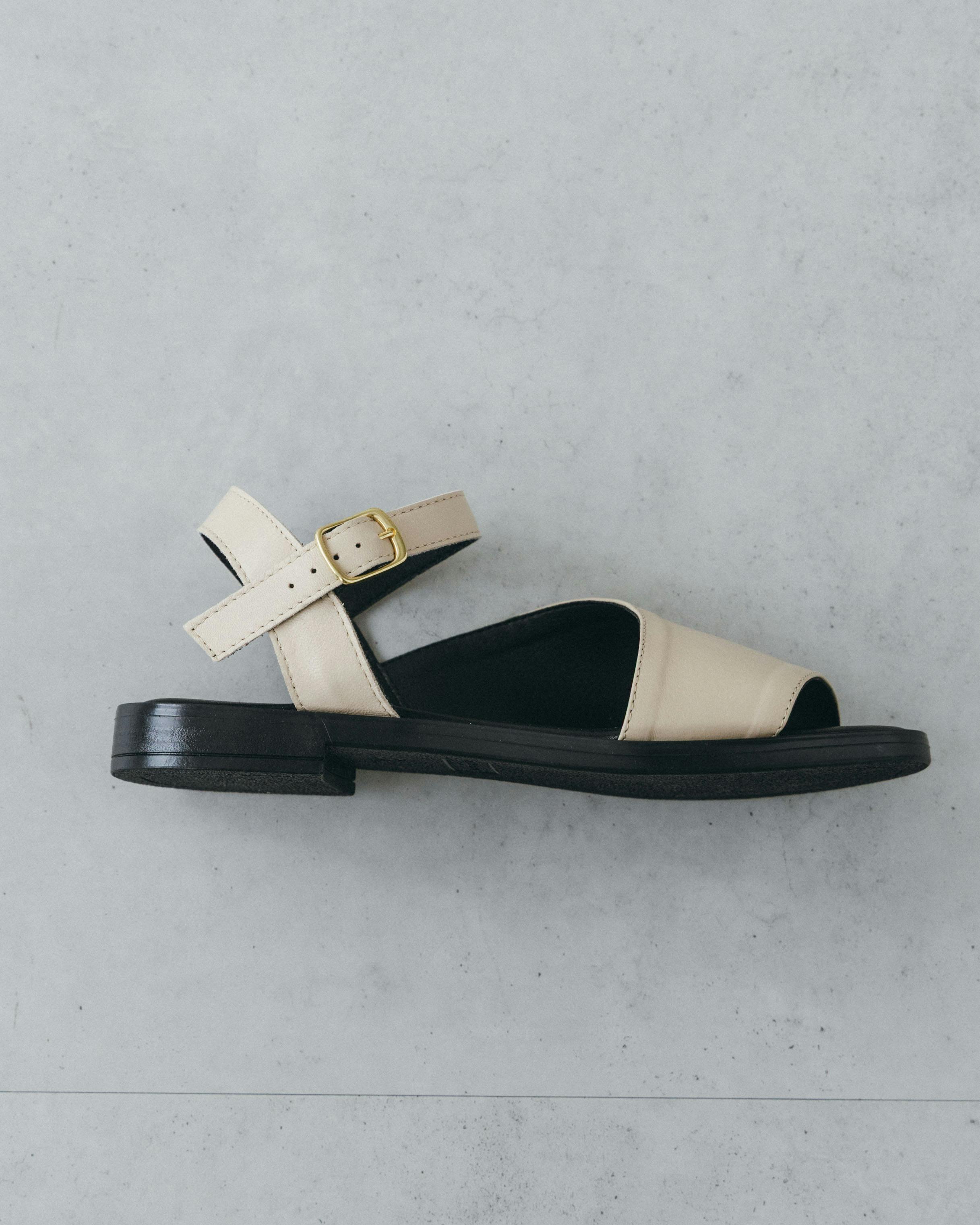 白とベージュの間のような、柔らかく温かみのある色合いだから、ソールの黒とのコントラストが強すぎず、リネンやコットンといったナチュラルな素材とも相性が抜群です。