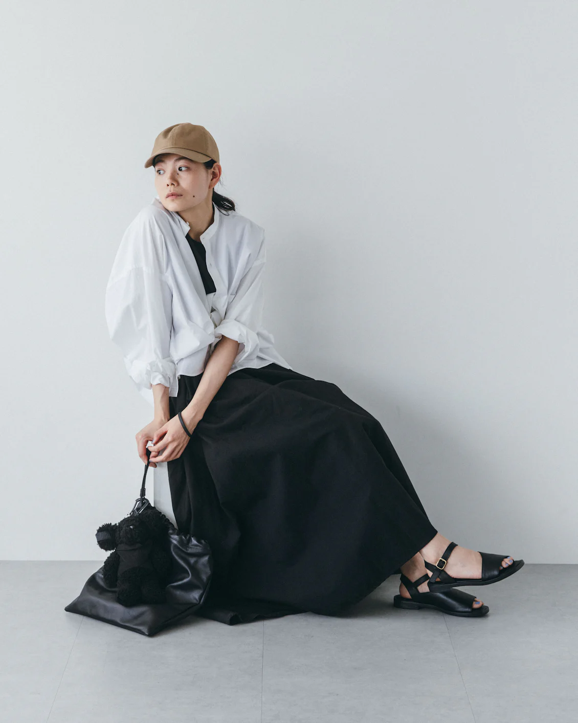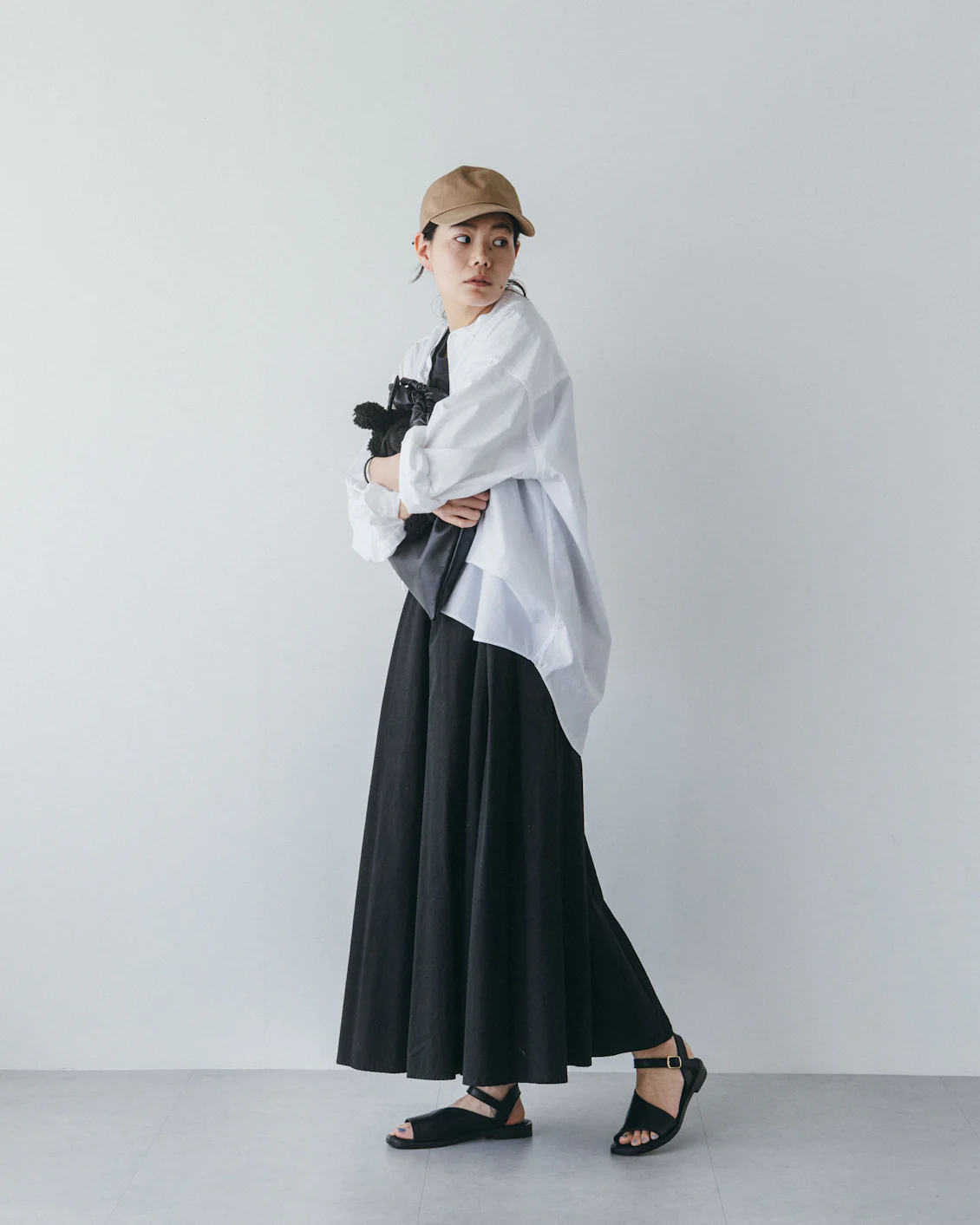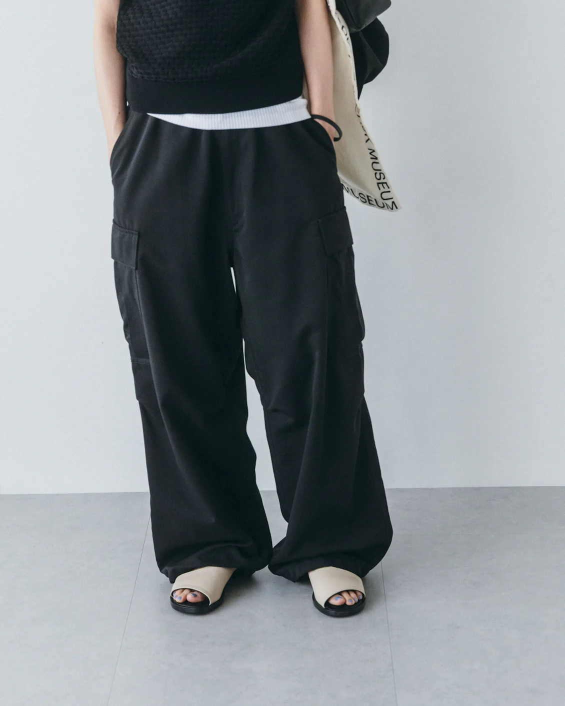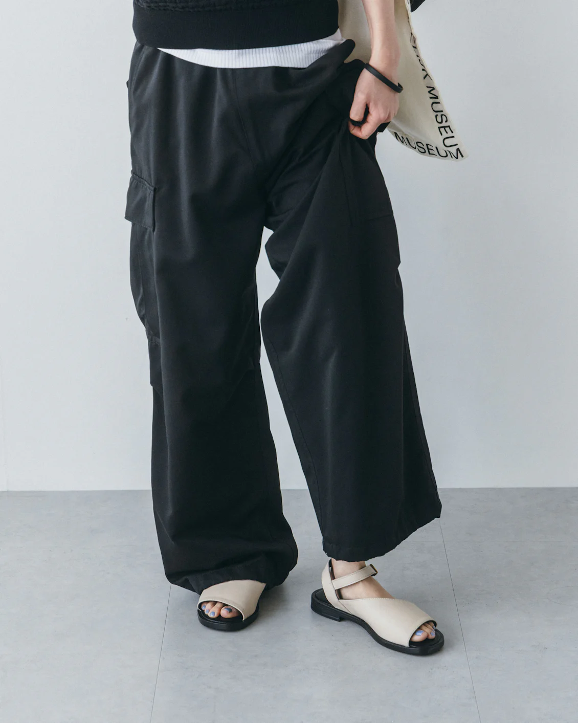 白とベージュの間のような、柔らかく温かみのある色合いだから、ソールの黒とのコントラストが強すぎず、リネンやコットンといったナチュラルな素材とも相性が抜群です。