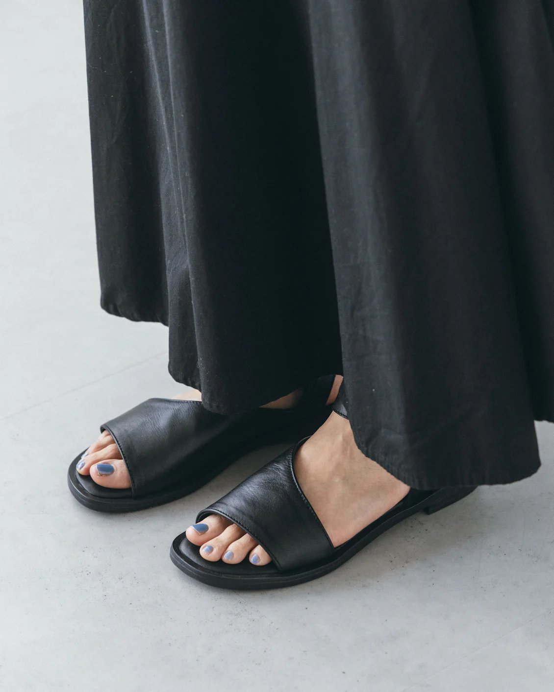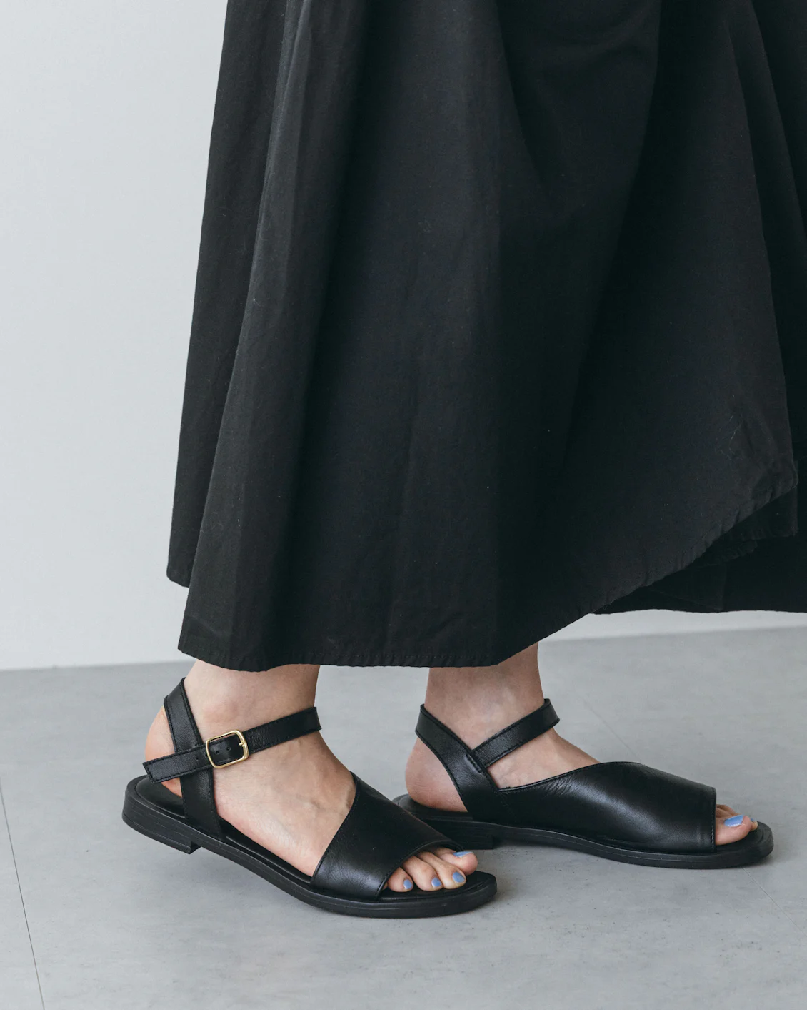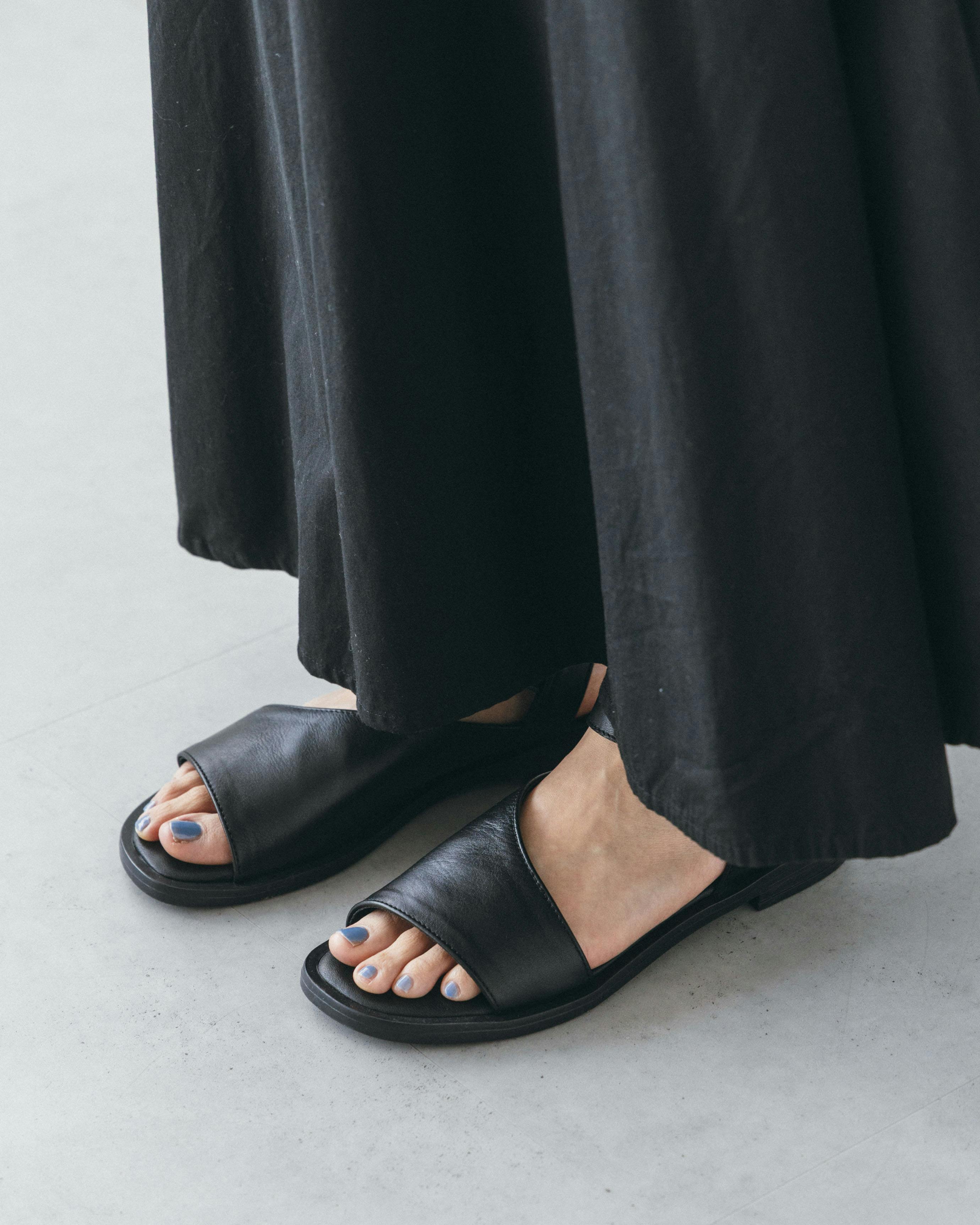 肌の見え具合が程よいので、サンダルならではの爽やかさがありながらも、品よく落ち着きのあるデザインに。