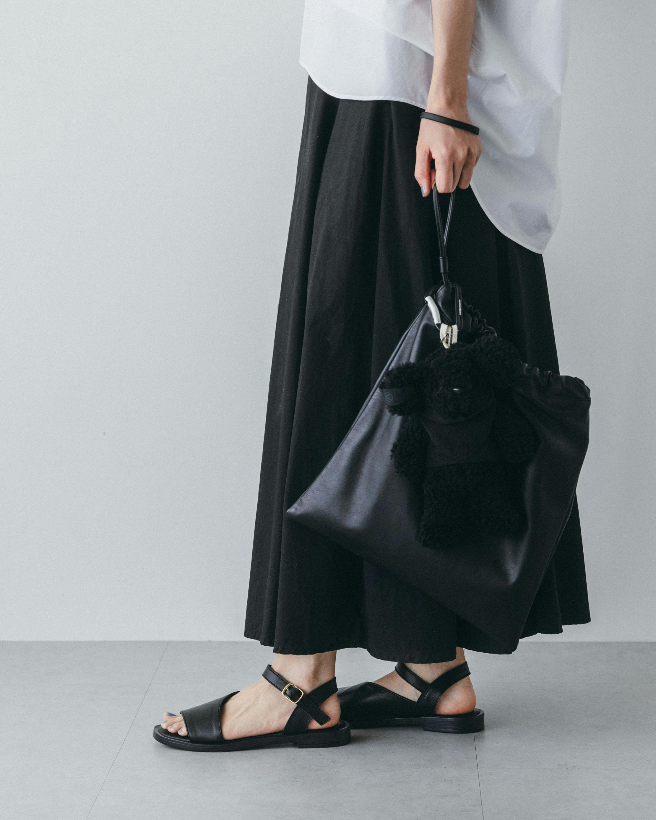 どんなコーデとも合わせやすい、定番カラーの「ブラック」は、ベルトからソールまで黒で統一された、シックな佇まい。