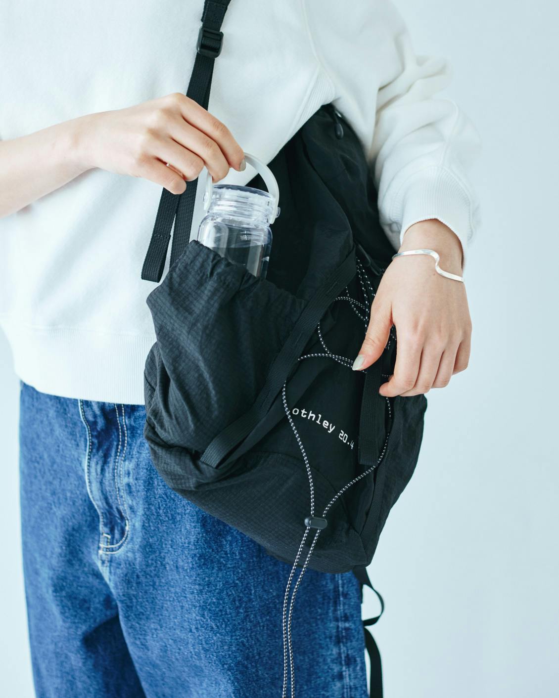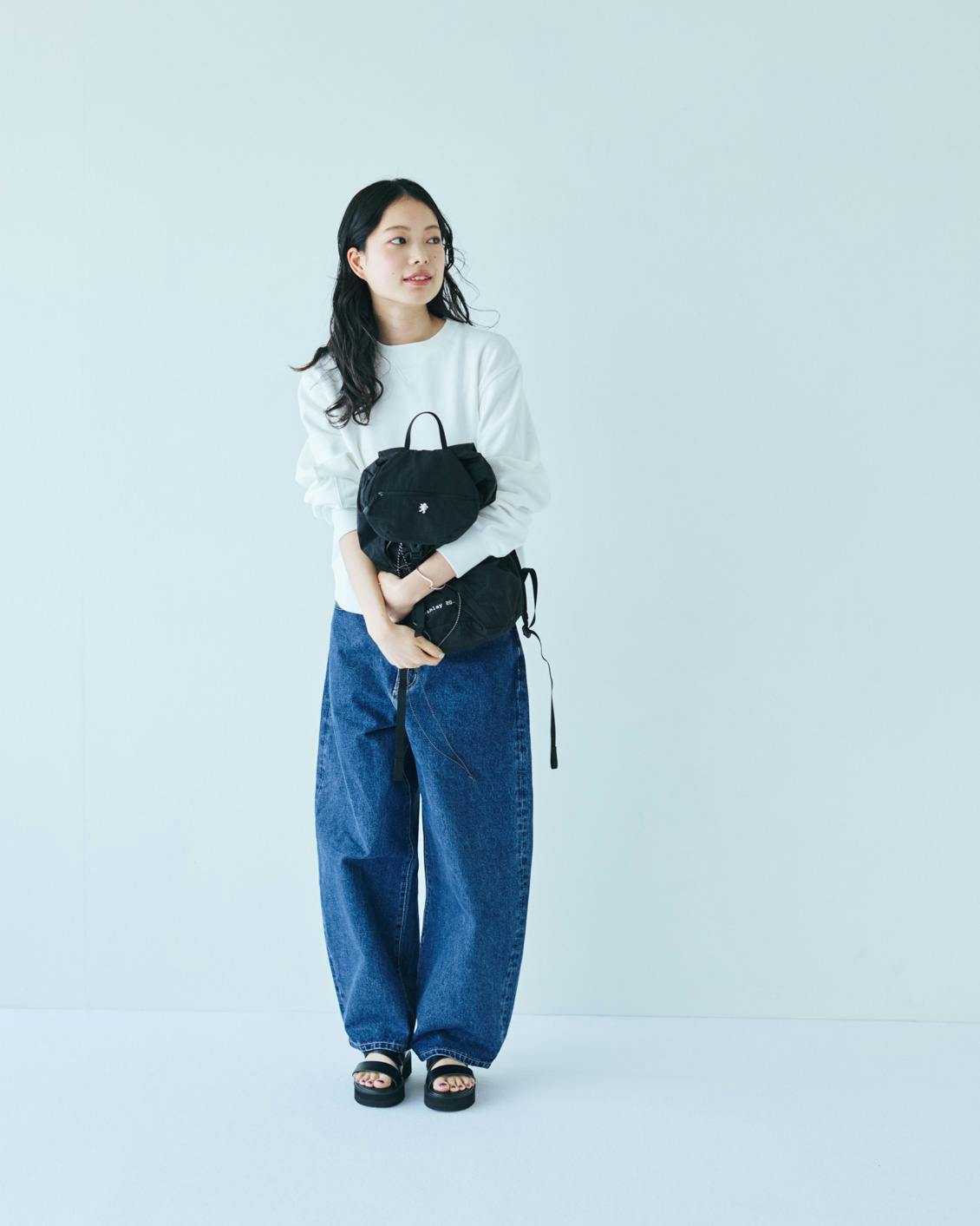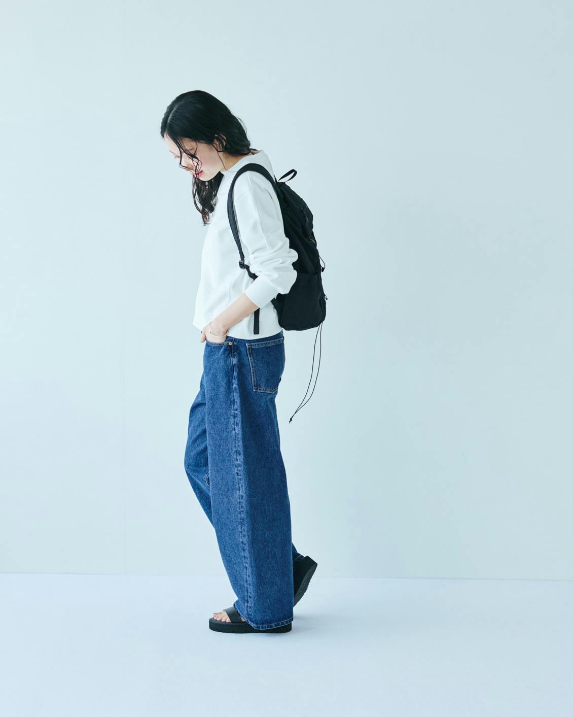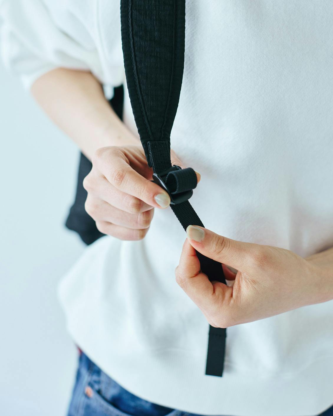 荷物が少なければ絞って使うことで、圧迫感を感じさせないシルエットに。