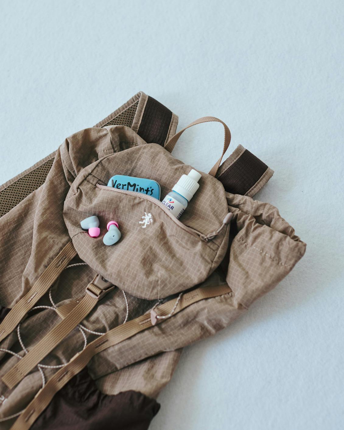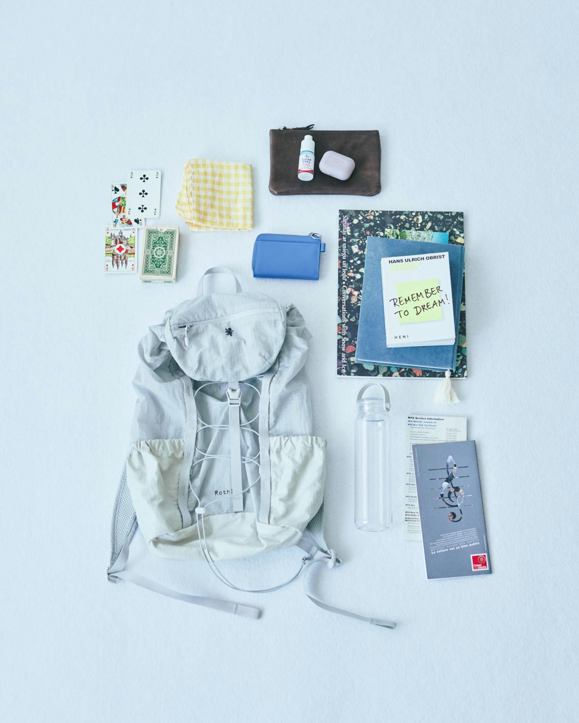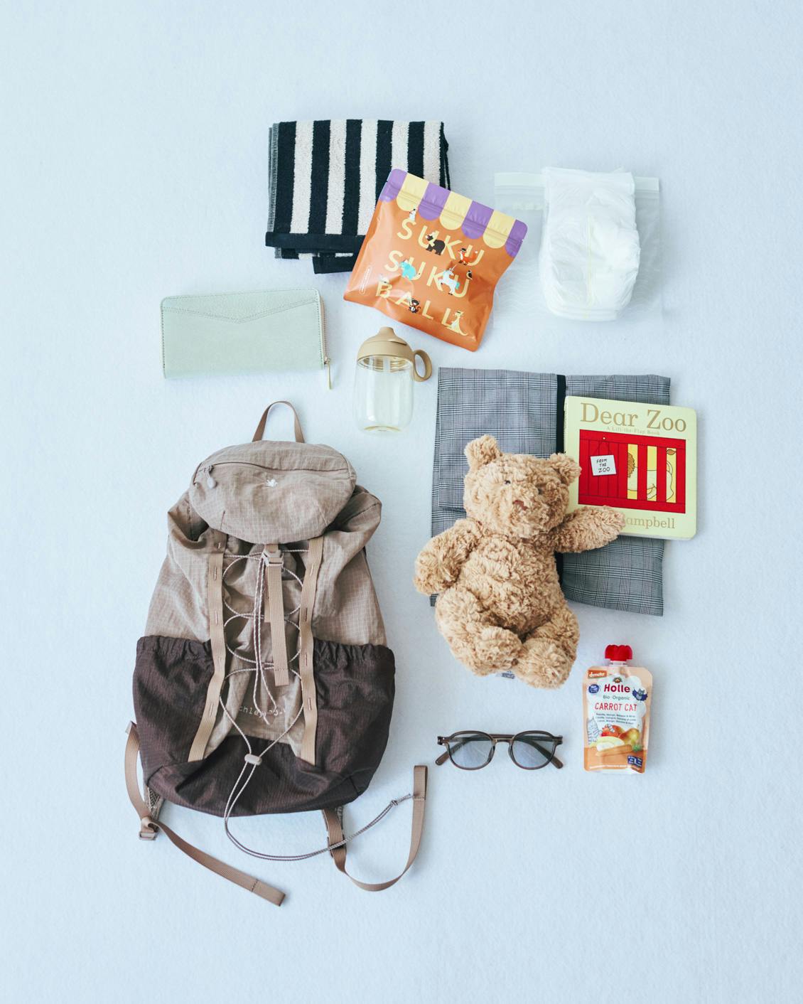 とにかく使い勝手には事欠かないバックパック。いろいろなお出かけシーンを妄想した、バッグの中身もどうぞ。
