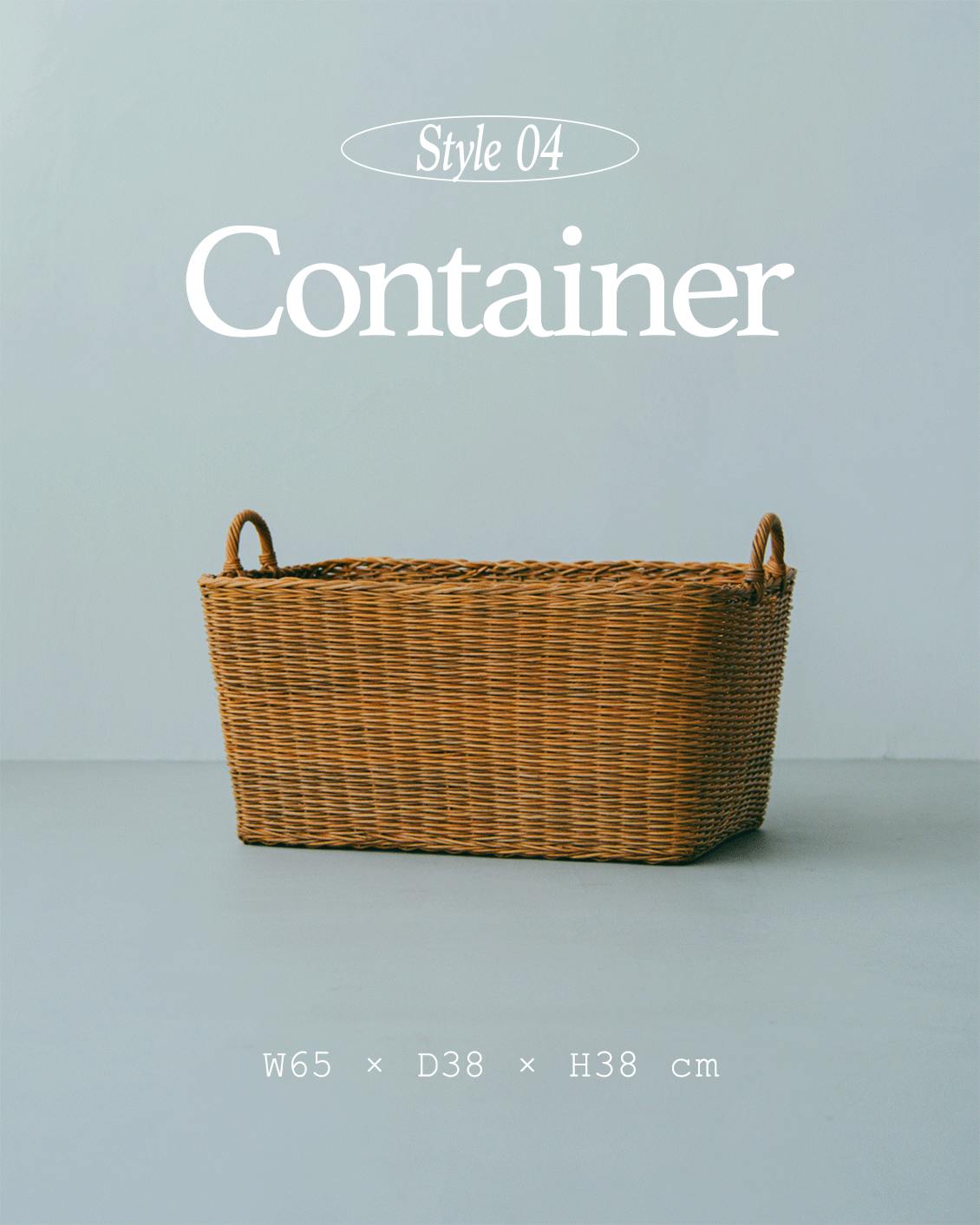 「かごは大きいほど萌える」と、当店の中でもいちばんのかご好き、店長佐藤のイチオシがこの「container(コンテナ)」 です。
