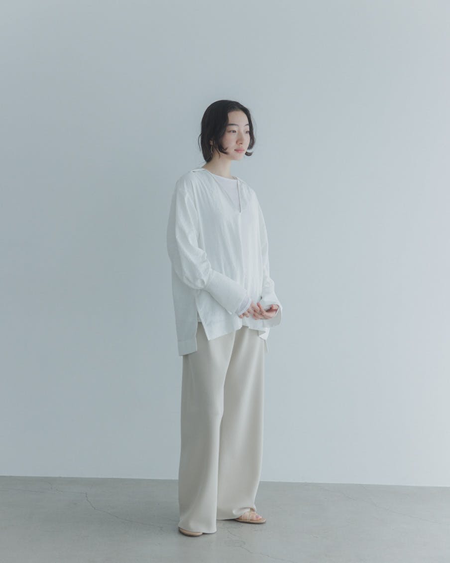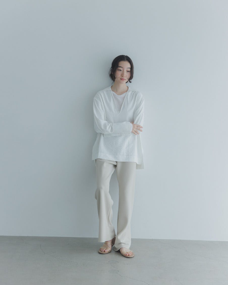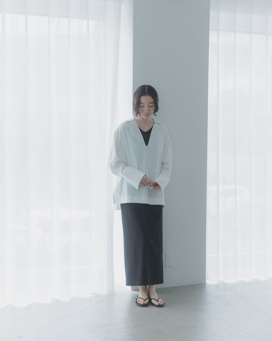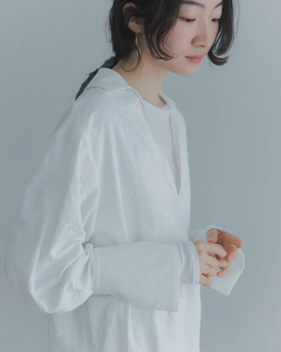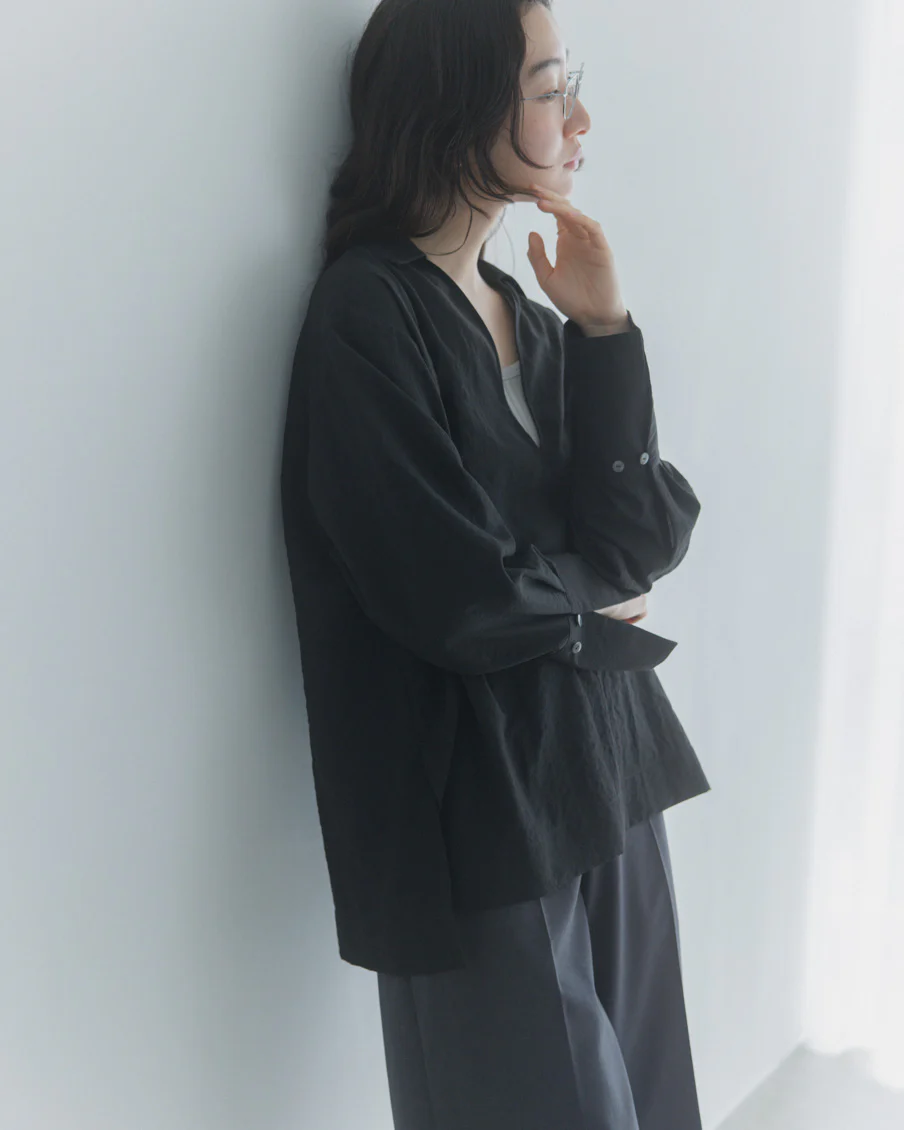 クローゼットを開けて「さて、今日はどうしよう」と考えるとき。焦らず、すっと整う一枚があれば。そんな想いで、このブラウスを作りました。