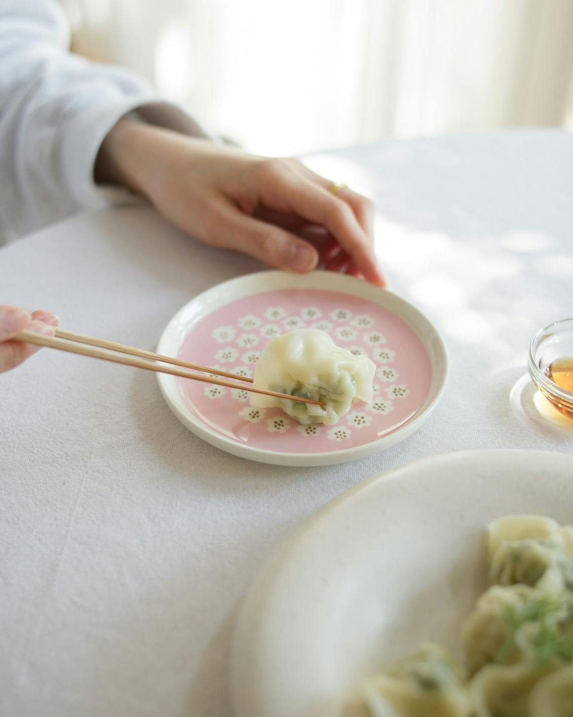 大皿料理を囲む日は、銘々皿にもぴったり。醤油皿よりは大きく、ケーキ皿よりは小さい絶妙な大きさなので、テーブルのちょっとした余白に収まり、食卓をぱっと彩ります。
