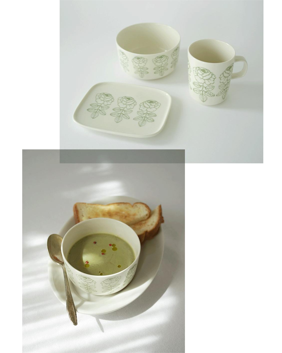 少しグレーを含んだグリーンはどんな食器とも相性が良いので、普段使いしやすいのも嬉しいポイントです。