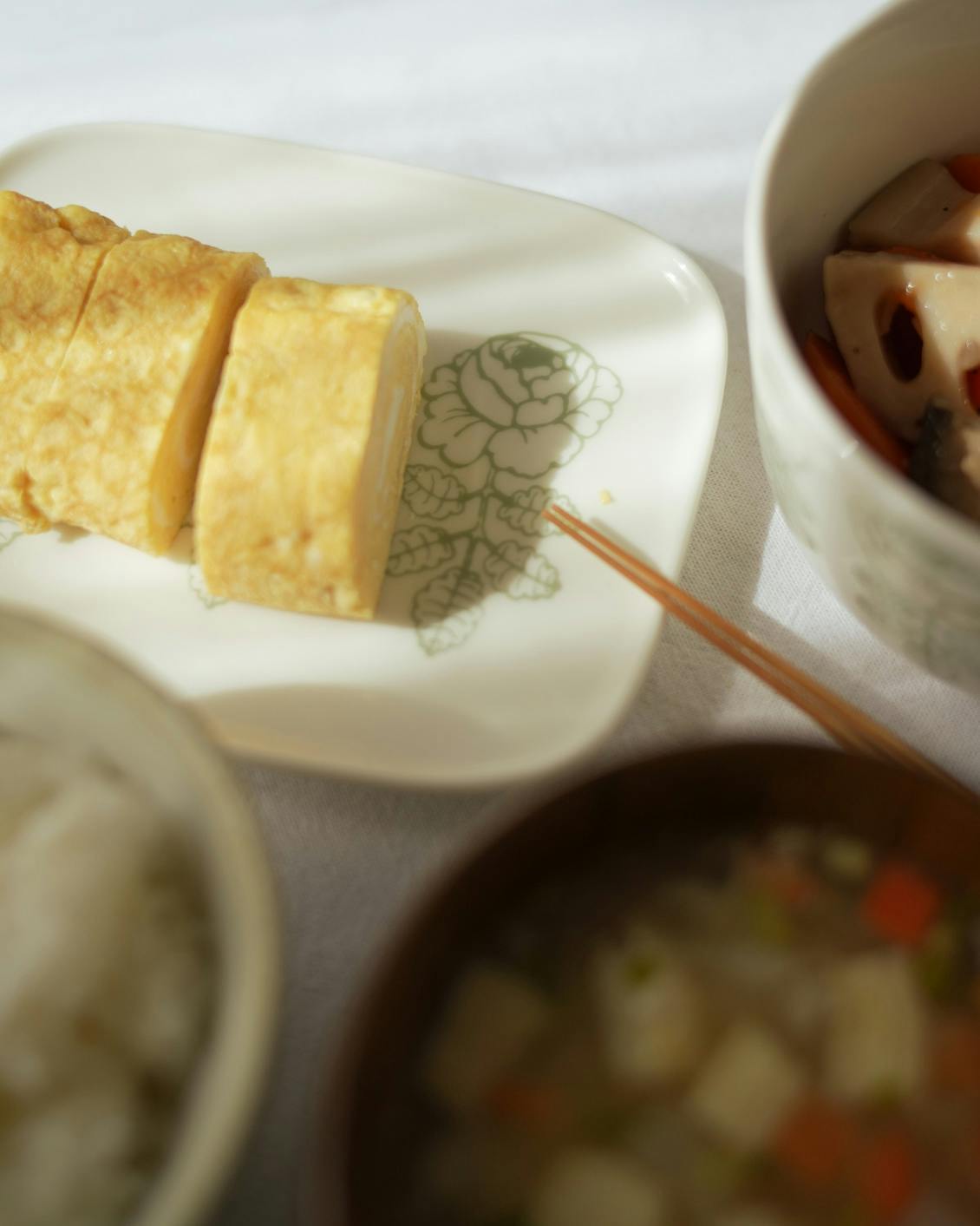 例えば、盛り付けで迷いがちな、卵焼きや魚の切り身に。