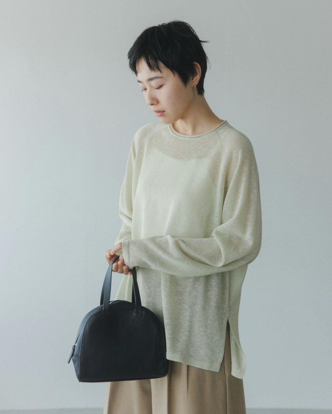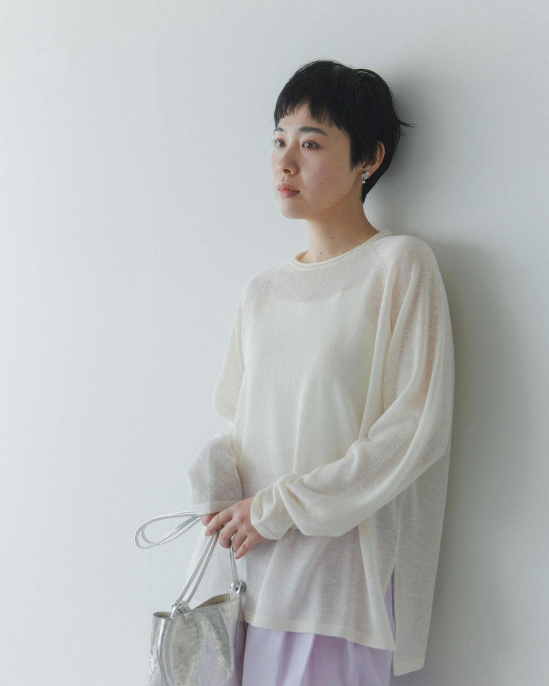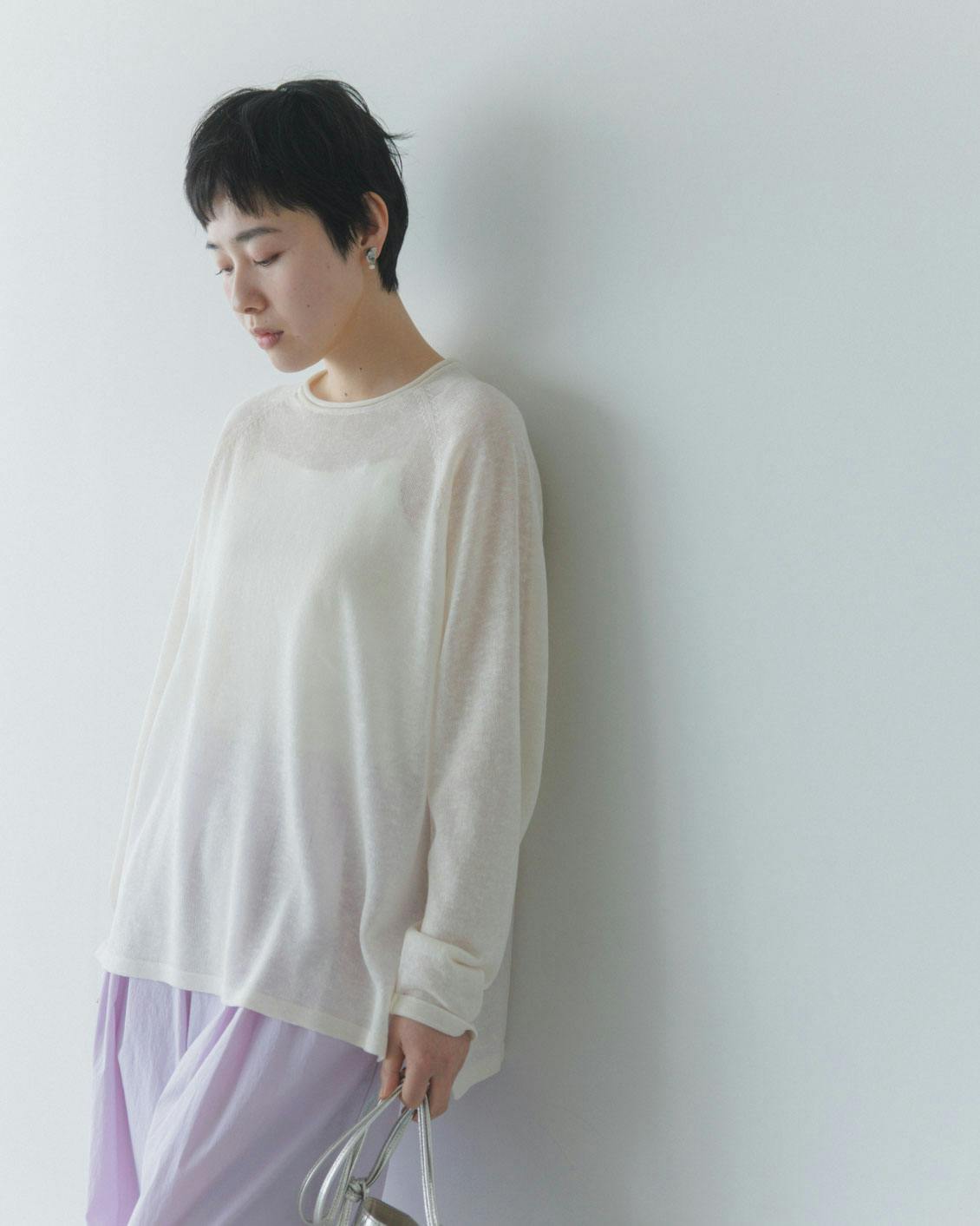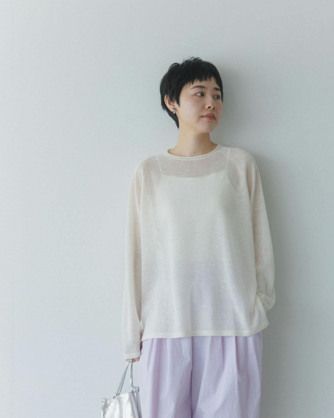 涼やか素材の長袖シアーニット(全3色)