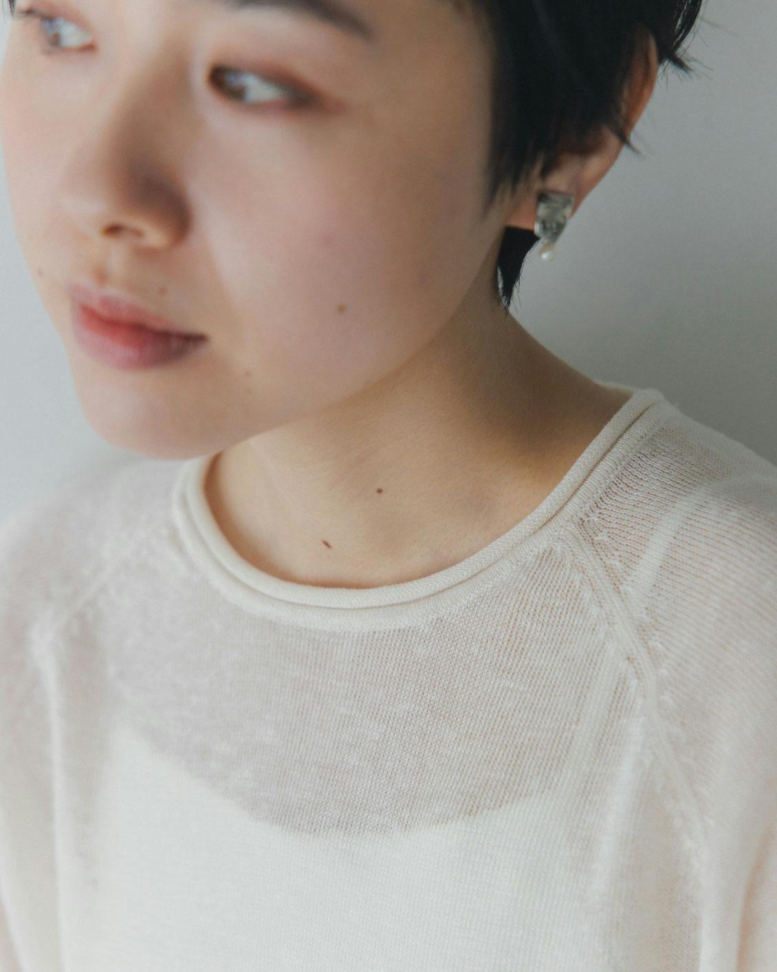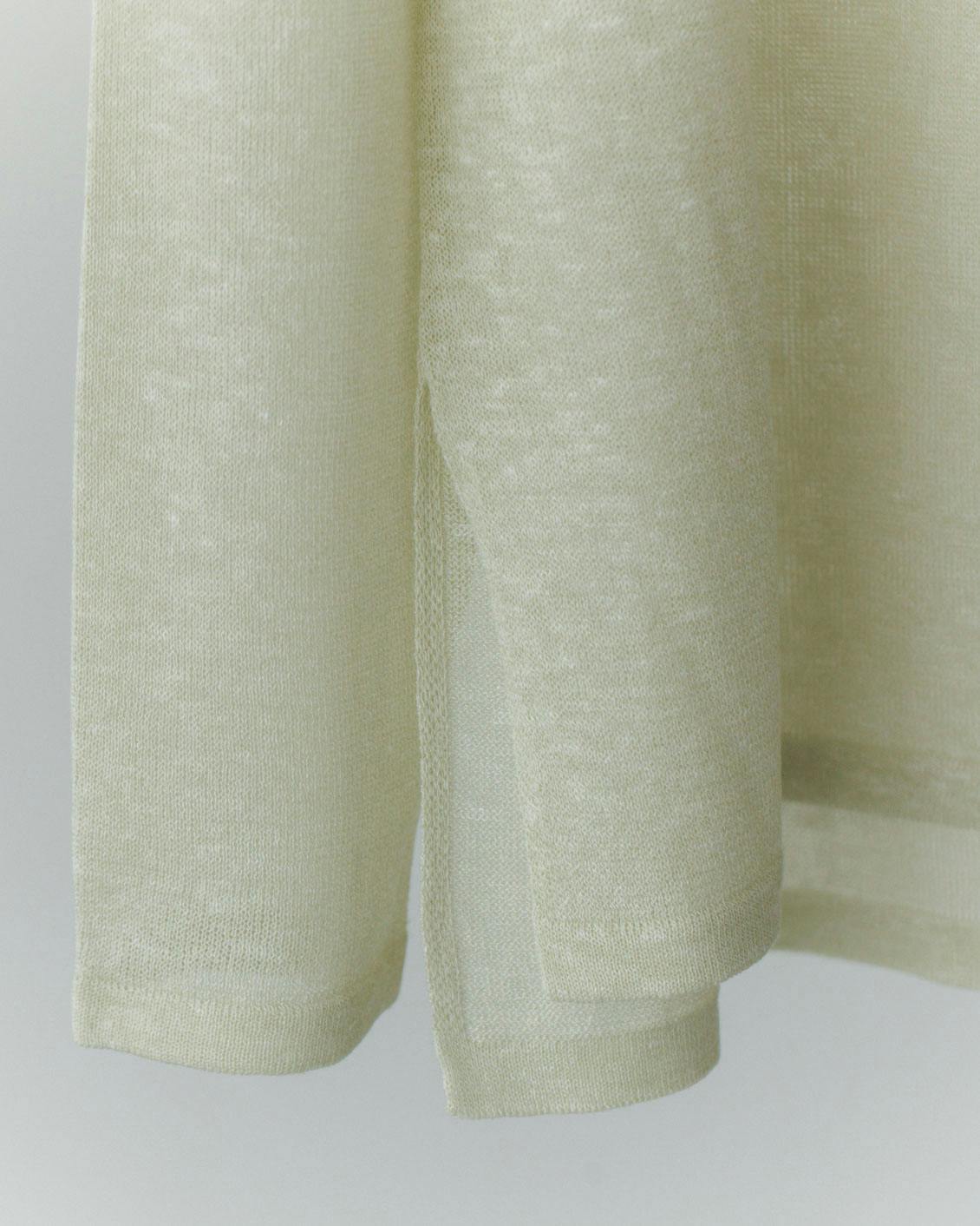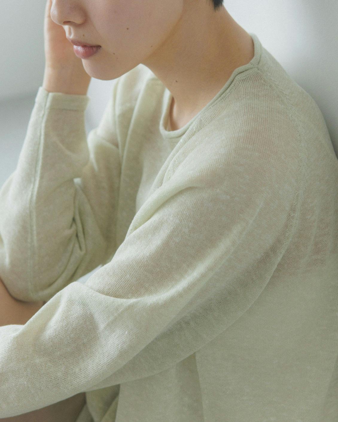 スラブ糸を使った、表情のある編み地。シアー感があって、見た目にも涼やかです。