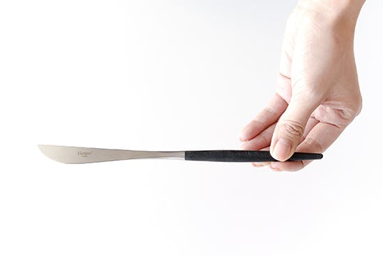 カトラリーはポルトガルにて手作業でひとつひとつ丁寧に作られています。その細身の独特なフォルムは持ちやすいように計算された設計なので手にすっと馴染んでくれますよ。