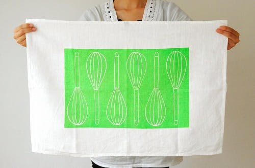 こちらのキッチンタオルは、まさにその日常にかかせない「ホイッパー」がモチーフになっています。