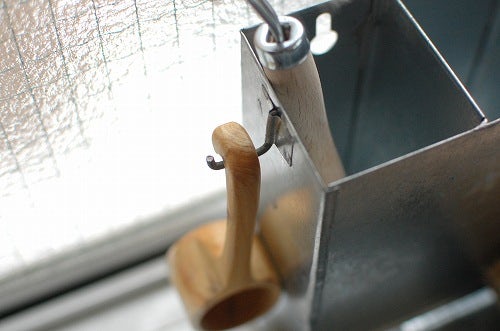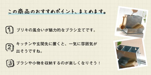 こちらは、キッチン周りの整理に便利なブリキ製のブラシスタンドです。