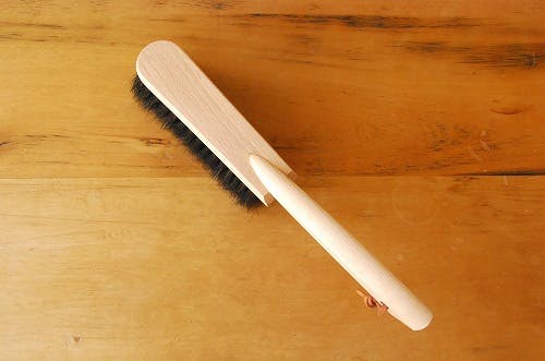 | お手入れ方法 | ブラシ部分の汚れは時折りぬるま湯に溶かした中性洗剤にて洗浄し、よく乾かして下さい。持ち手の天然木の部分は、ミネラルオイルあるいは植物油を乾いた布に含ませ、時折り磨いてあげることで、経年とともに色艶、風合いをより増していきます。 |