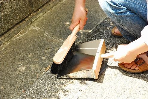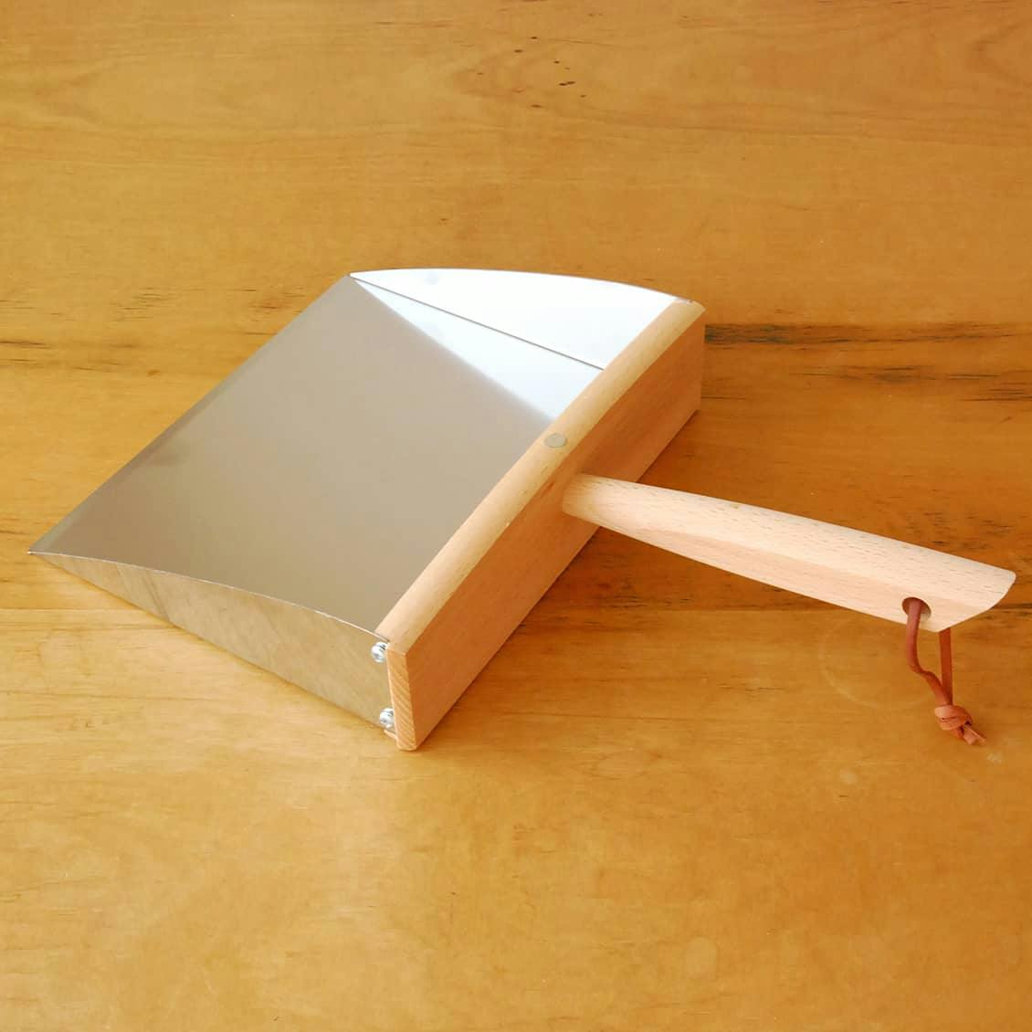 ステンレスとブナ材のコントラストが素敵なダストパン。カゴに入れたり革ひもを引っ掛けたりと見せる収納を楽しみながら、じっくりと育てるようにお使いください。