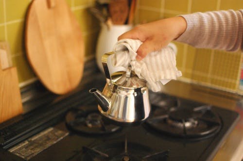 沸かしたてのケトルは持ち手も少し熱いので