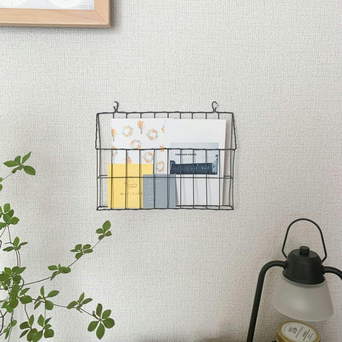 ポストカード以外にもコーヒーフィルターや小さな植物など、様々なものを入れてお使いいただけるワイヤーレターラック。