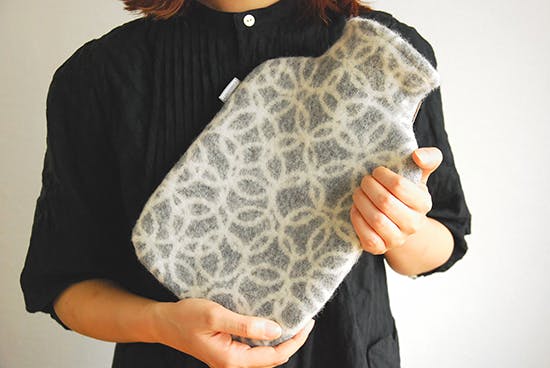 こちらのカバーはウール100%。保温性に優れ、中のお湯が冷めにくくなっています。