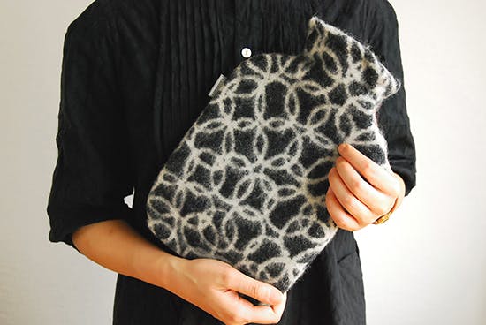 こちらのカバーはウール100%。保温性に優れ、中のお湯が冷めにくくなっています。