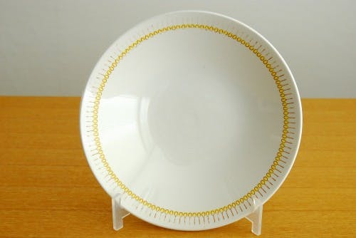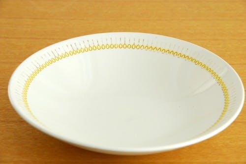 ぐるりと縁取られた模様はとても繊細なタッチで描かれ、白地にイエローの明るい色味が爽やかな印象です。