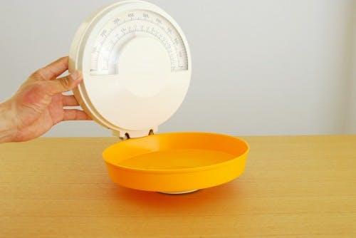 丸い時計のような形をした量りは、蓋をパカッっと開けて使う仕組みになっています。使わない時は蓋を閉じた状態にしておくことができます。