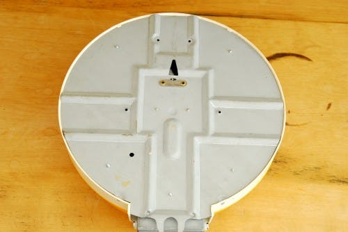 壁に短いビスなどを打って簡単に掛けられるようになっています。蓋の内側がそのまま量り台になっていますので、蓋を開けその上にボウルなどを置いて計量することが可能です。物を台の上にのせると、量り針が動きます。