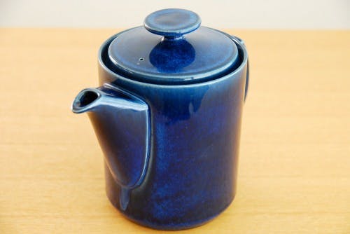 デンマークで見つけた陶器のコーヒーポット(ブルー)です。
