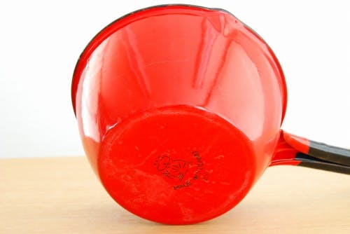 デンマークで見つけたホーロー製片手鍋(レッド)です。パキッと明るい赤色がかわいい、片手鍋が届きました。
