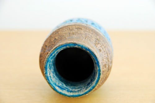 デンマークで見つけた陶器の花瓶(ブラウン×ターコイズブルー)です。