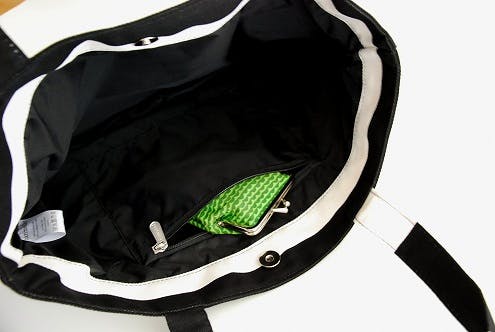 2. 内部には、ファスナーポケット付きで機能性もバッチリ!携帯電話や鍵、定期入れなどが入ります。