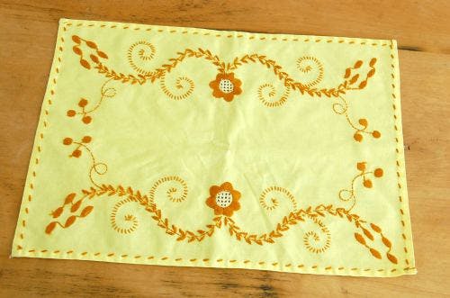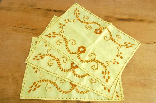 朝ごはんに食卓に敷くのはもちろん、チェストの上、玄関などなど様々なシーンを明るく楽しくしてくれるかと思います。一枚一枚、手作りで作られているので刺繍が一枚ごと微妙に異なっていますので、そういった風合いもぜひお楽しみにいただければと思います!