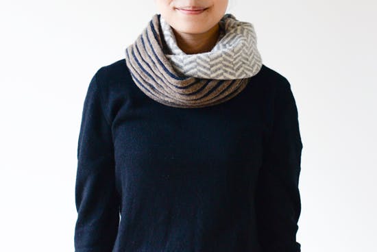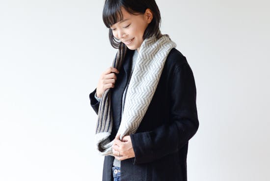 1枚で2トーンになっているスヌードは、柄の見せ方や色の配分で気軽にアレンジが楽しめます。
