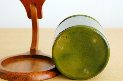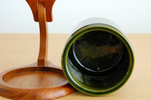 状態 :ポット開口部縁に極小のチップが見られますが、ご使用には問題ありません。その他ヒビや貫入など見られず釉薬の艶もたっぷりと保たれたヴィンテージ品としては良好なコンディションです。ポット内部も僅かに釉薬の剥がれが見られるものの比較的綺麗に保たれていますし、蓋もしっかりと開閉できる状態です。