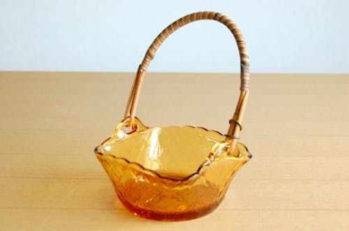 こちらのガラスの小物入れを見たとき、なんて乙女心をくすぐるアイテムなのだろう・・・!と思ったんです。女性が好きなバスケットと美しいガラスが組み合わさっているからでしょうか?