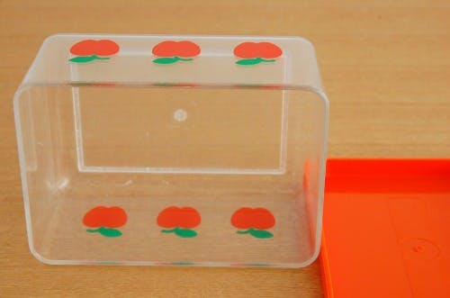 デンマークで見つけたプラスティック製のバターケース(リンゴ模様)です。