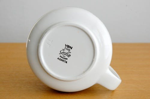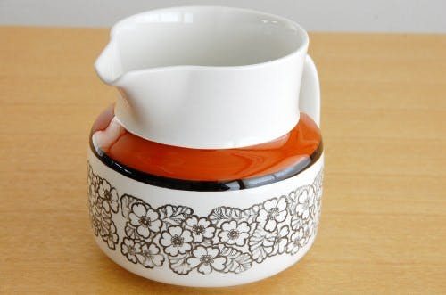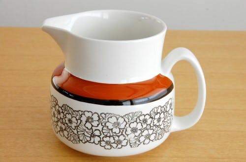 我が家でもAGNETAのクリーマーを愛用中ですが、キッチンの棚に並べている時の姿がとても可愛いのです。模様といい、色合いといい、木製の棚のなかに収まっている姿がとても絵になってくれていて、愛してやまない存在です。
