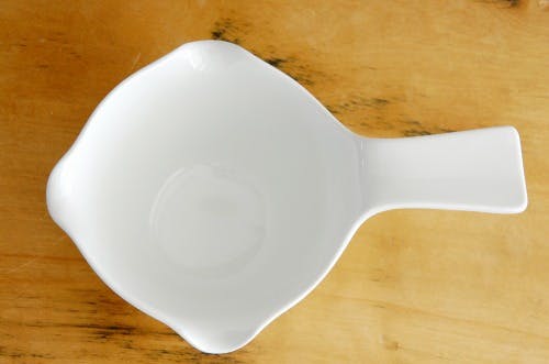 繊細なラインで描かれたユニークな形のお花、横にかわいく添えてある葉っぱ。シックでありながら、かわいさも持ち合わせているソースポットであるなと思います。