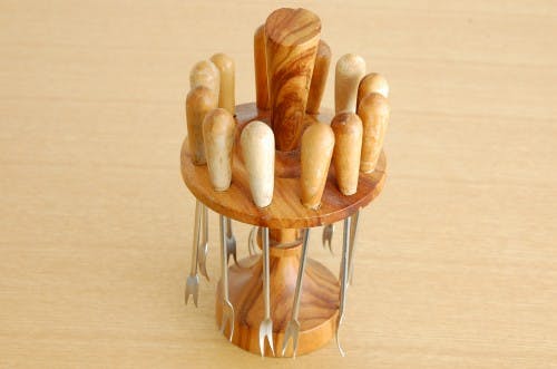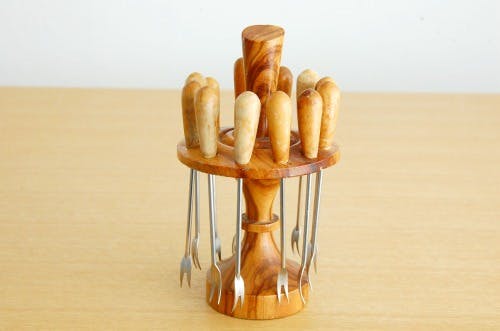 スウェーデンで見つけた木製台付きフルーツピックセットです。
