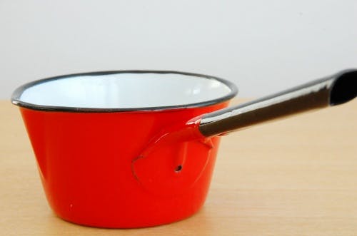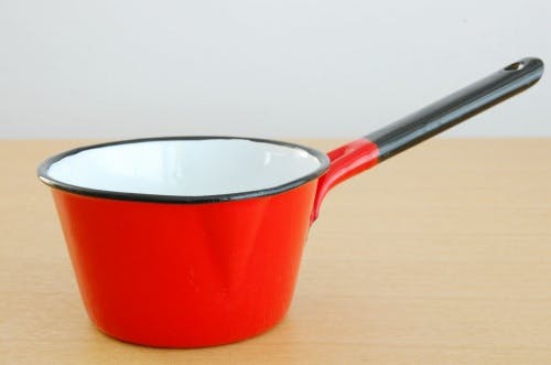 デンマークで見つけたホーロー製ミルクパン(レッド)です。パキッと明るい赤色がかわいい、ミルクパンが届きました。