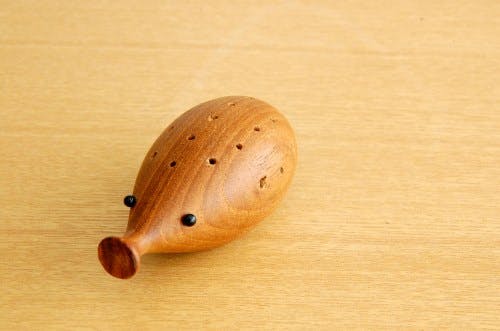 このチーク材でできたハリネズミに爪楊枝を挿せるような作りになっており、爪楊枝を挿してあげることで、本当の「ハリネズミ君」が完成します。