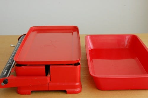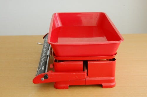スウェーデンで見つけた古い業務用の量り(レッド)です。スウェーデンでのEKSというメーカーのもの。